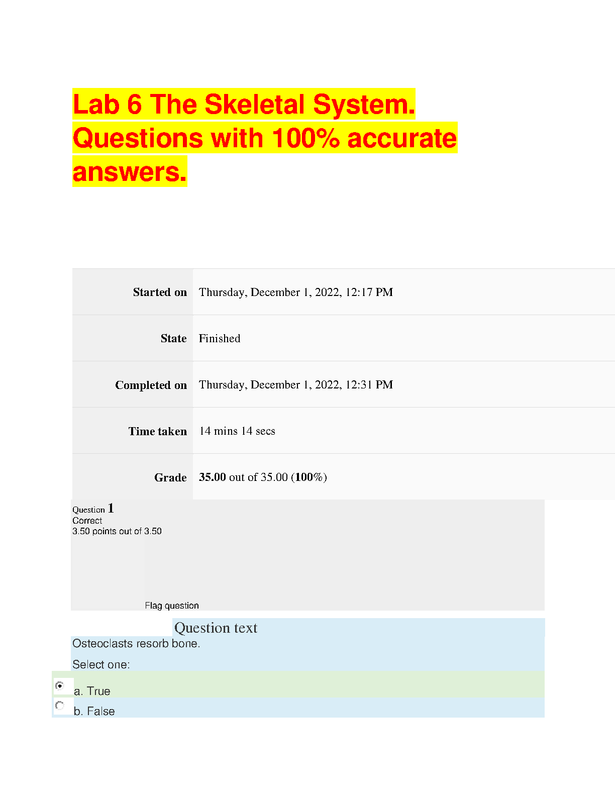 Ace Your Exams: The Skeletal System Lab 6 with 100% Accurate Answers for 2024/2025