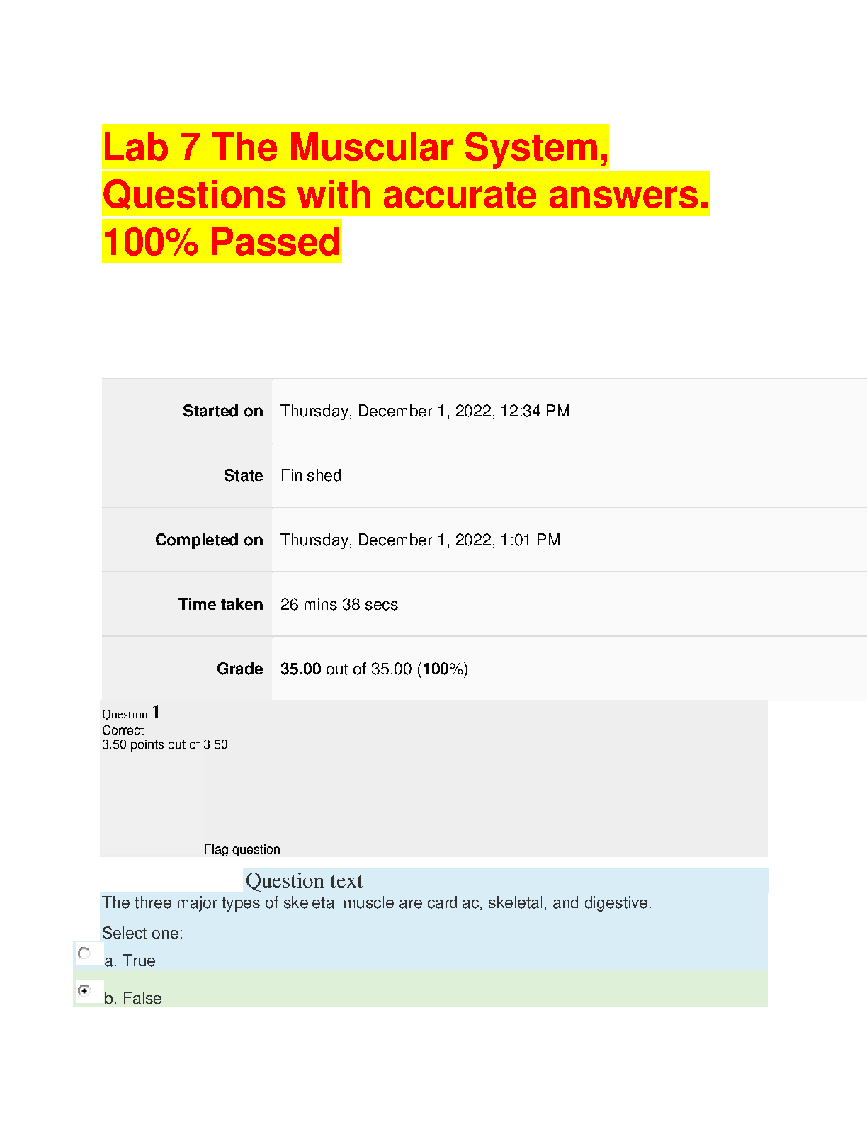 Lab 7 The Muscular System, Questions with accurate answers. 100% Passed