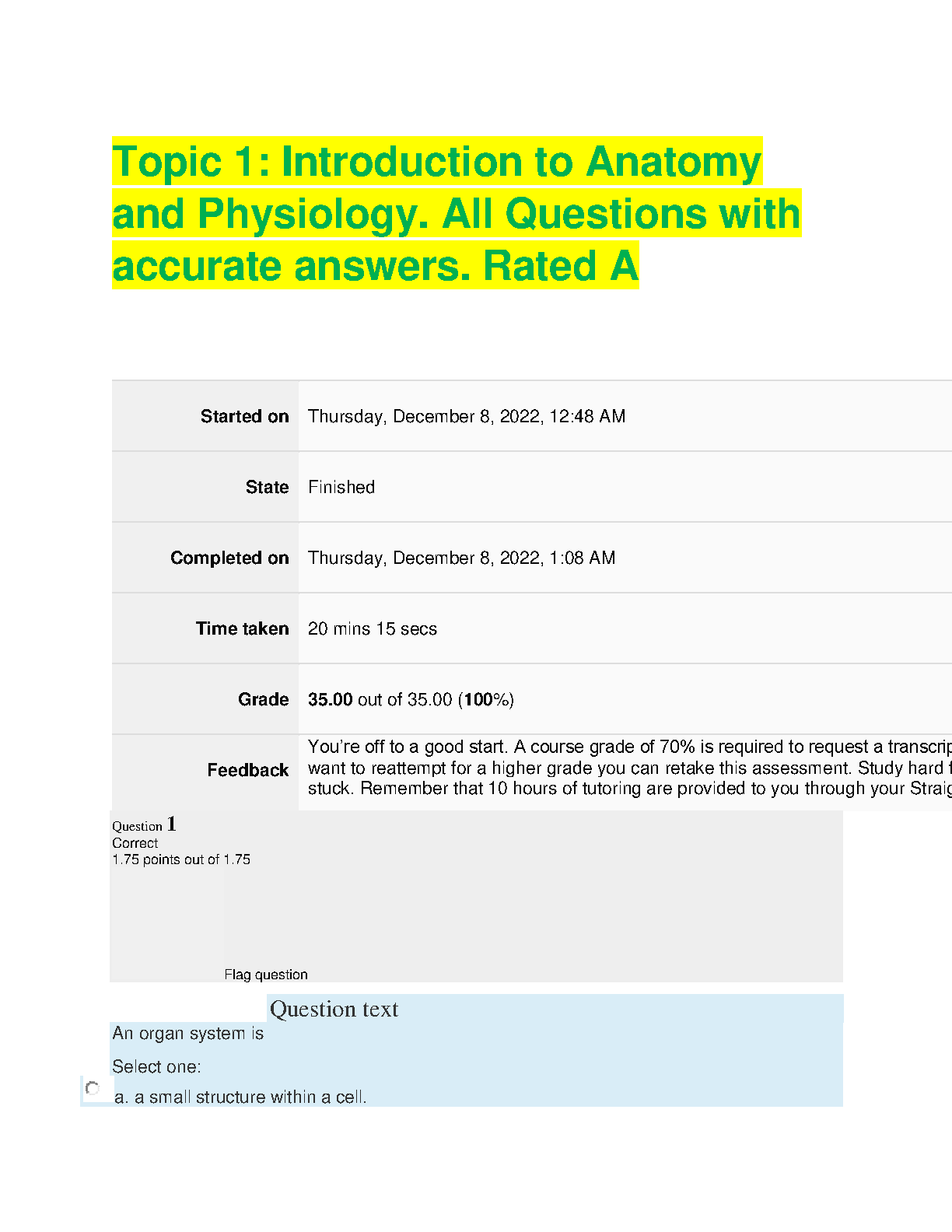Ace your Anatomy and Physiology exam with this comprehensive study guide! This resource includes all the questions you need to master the subject and avoid resits. All answers are accurate and rated A, so you can be confident in your preparation.