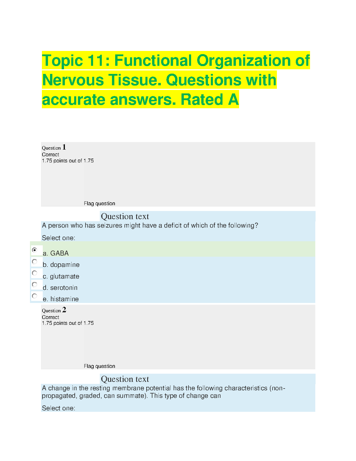 Functional Organization of Nervous Tissue: Questions with accurate answers. Rated A - Edition 1