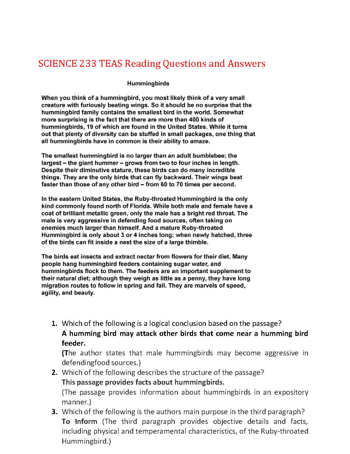 Science 233 TEAS Reading Questions and Answers (2024/2025 Edition) - Ace Your Exams on the First Attempt!