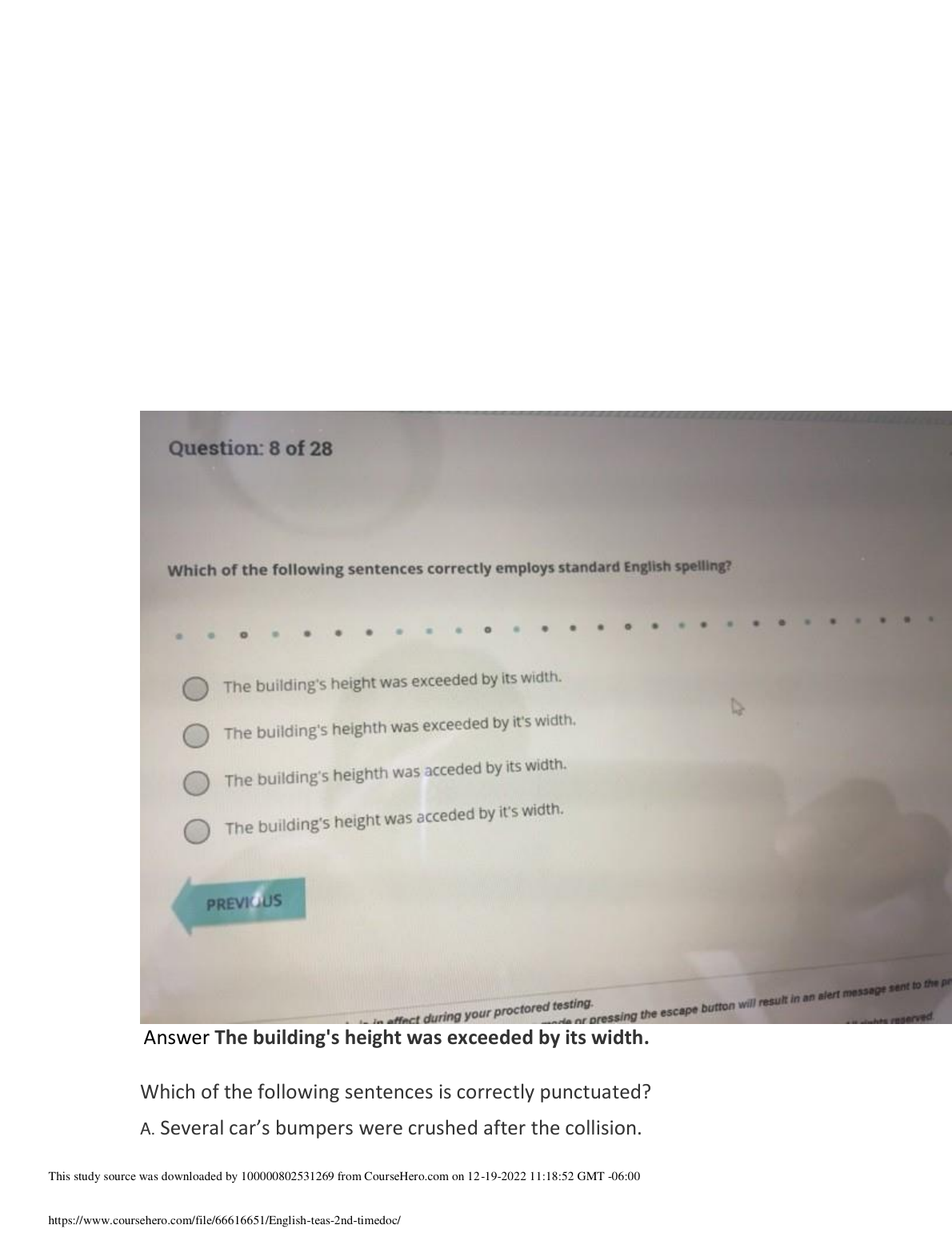 English Teas 2nd Time Questions and Answers Latest Updated 2022/2023