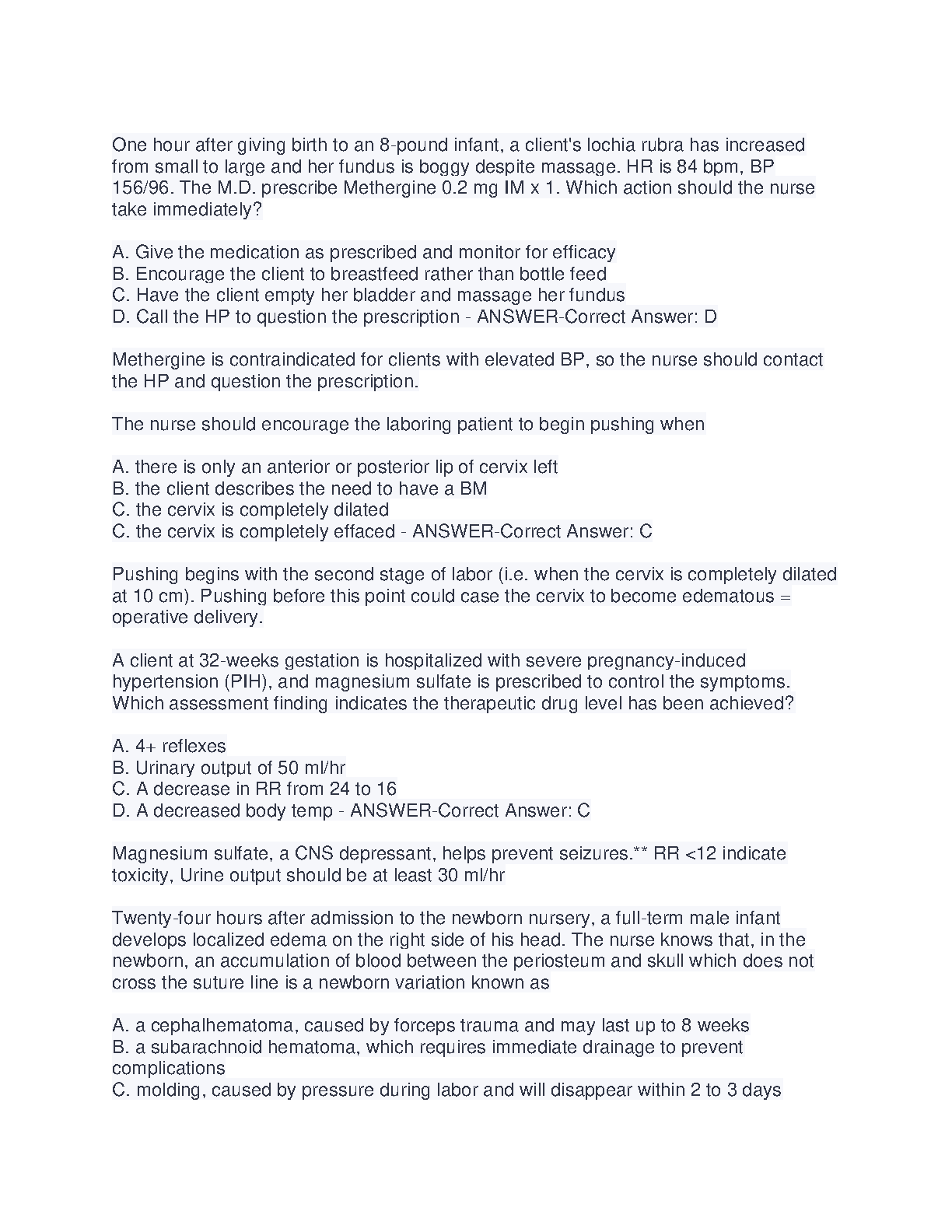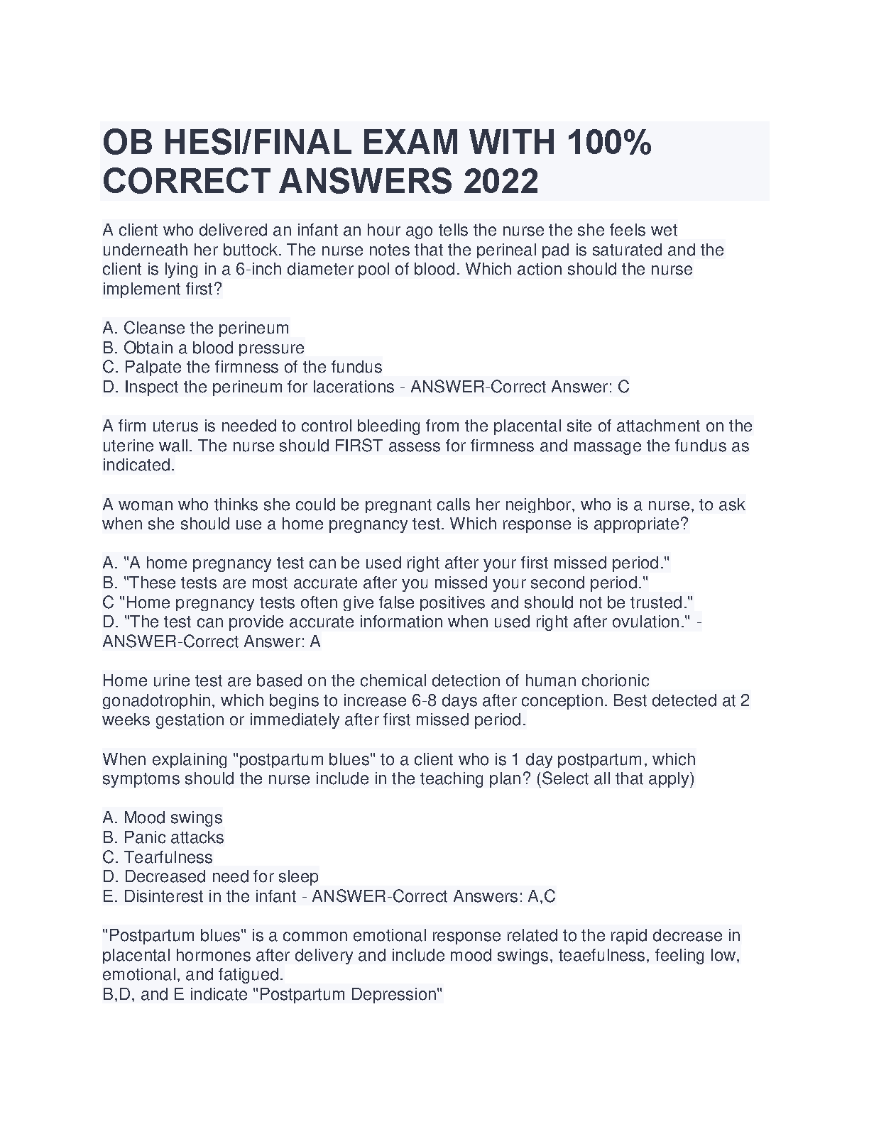 OB HESI/FINAL EXAM WITH 100% CORRECT ANSWERS 2022: The Ultimate Guide to Ace Your Nursing Exam on the First Attempt