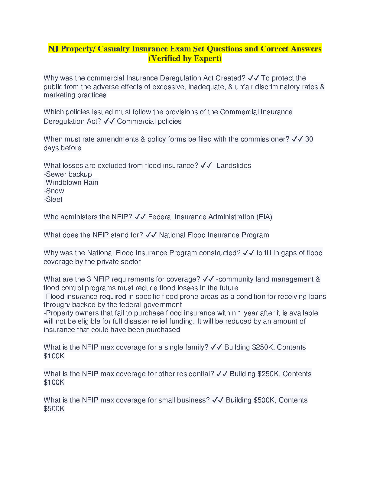 NJ Property/Casualty Insurance Exam Set Questions and Correct Answers (Verified by Expert)