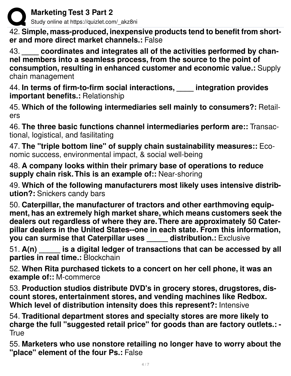 Marketing Test 3 Part 2 QUESTIONS AND ANSWERS UPDATED 2023