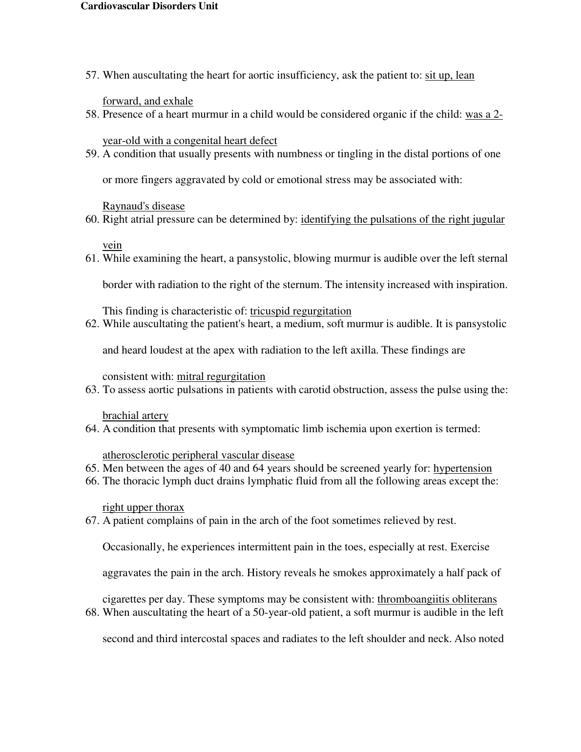 This NSG 6020 Cardiovascular Disorders Unit Exam is a comprehensive assessment tool designed to help students prepare for their exams on cardiovascular disorders. The exam covers a range of topics, including the pathophysiology of cardiovascular diseases, diagnostic testing, treatment modalities, and nursing management. With its 2023 edition update, it provides students with the latest information and insights into the field of cardiovascular disorders. This is an invaluable resource for all nursing students and professionals seeking to deepen their knowledge and enhance their exam preparation for the 2024/2025 academic year.