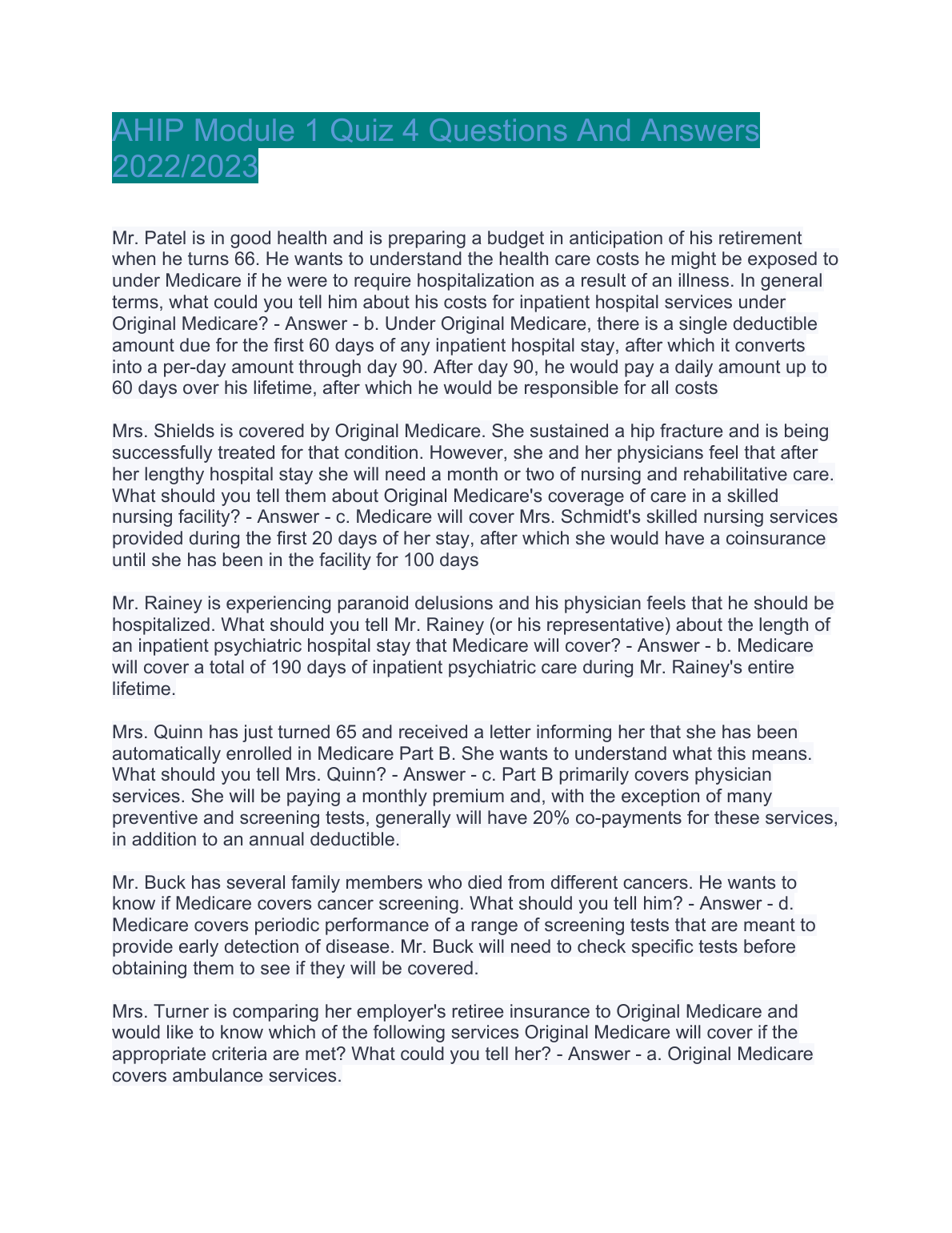 AHIP Module 1 Quiz 4 Questions And Answers BEST GUIDE 2022/2023. DOWNLOAD on www.hackedexams.com INSTANTLY.