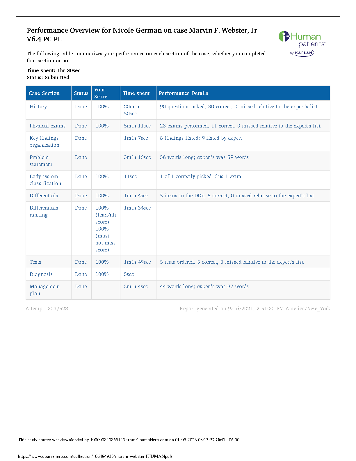 iHuman Patients Case Study - Marvin F. Webster, Jr. Edition for 2024/2025 - Ace Your Exams on the First Try!