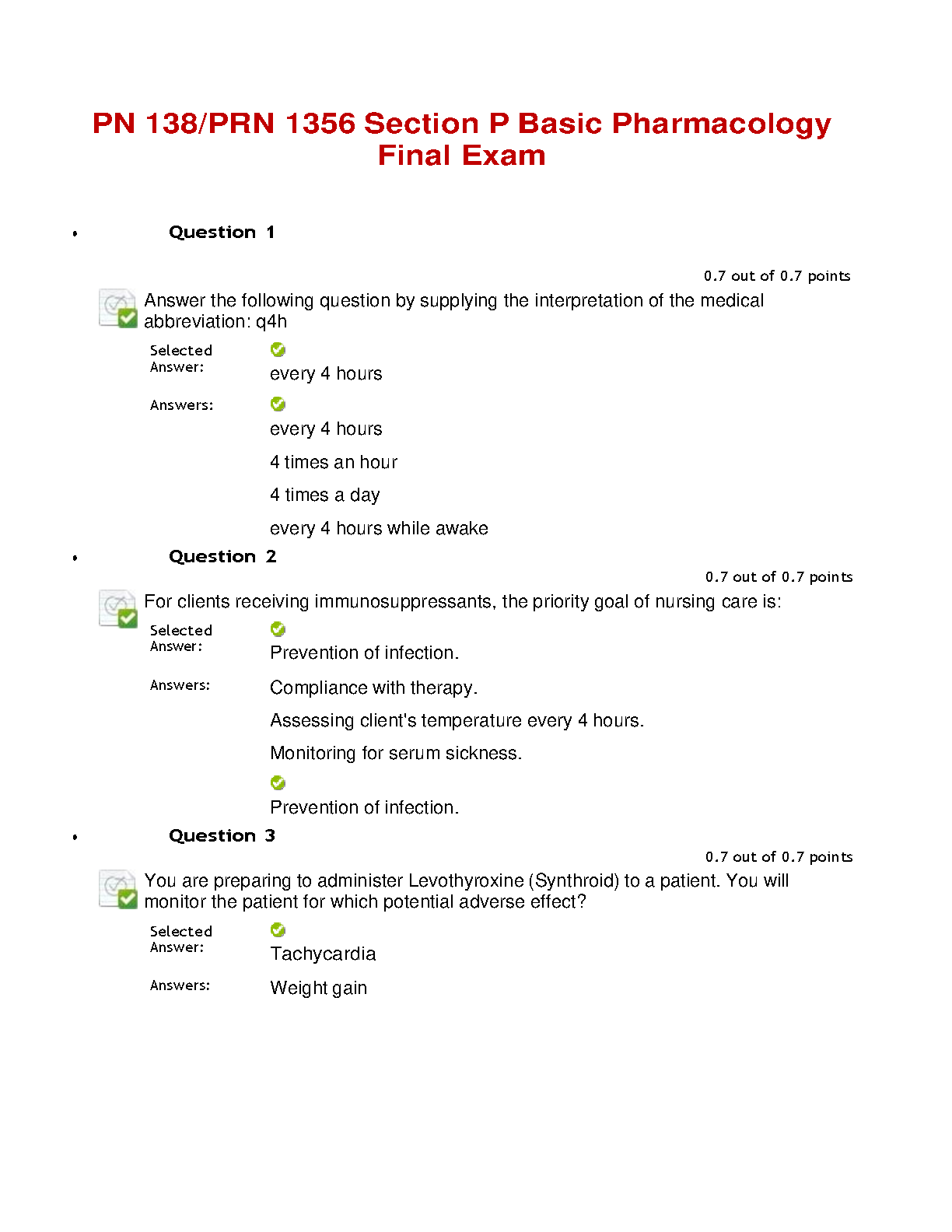 PN 138/PRN 1356 Section P Basic Pharmacology Final Exam - Latest Edition - Ace Your Exams on the First Attempt!