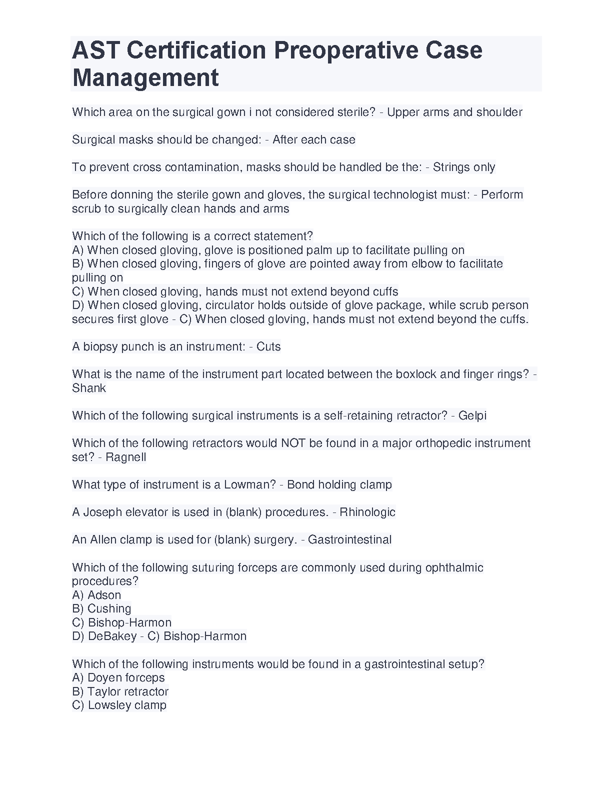 This AST Certification Preoperative Case Management study guide is meticulously designed for 2024/2025 exams and provides an in-depth understanding of the crucial aspects of preoperative care. This resource will equip you with the knowledge and skills you need to confidently tackle exam questions and achieve success.