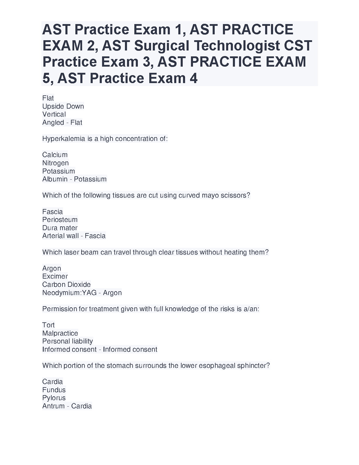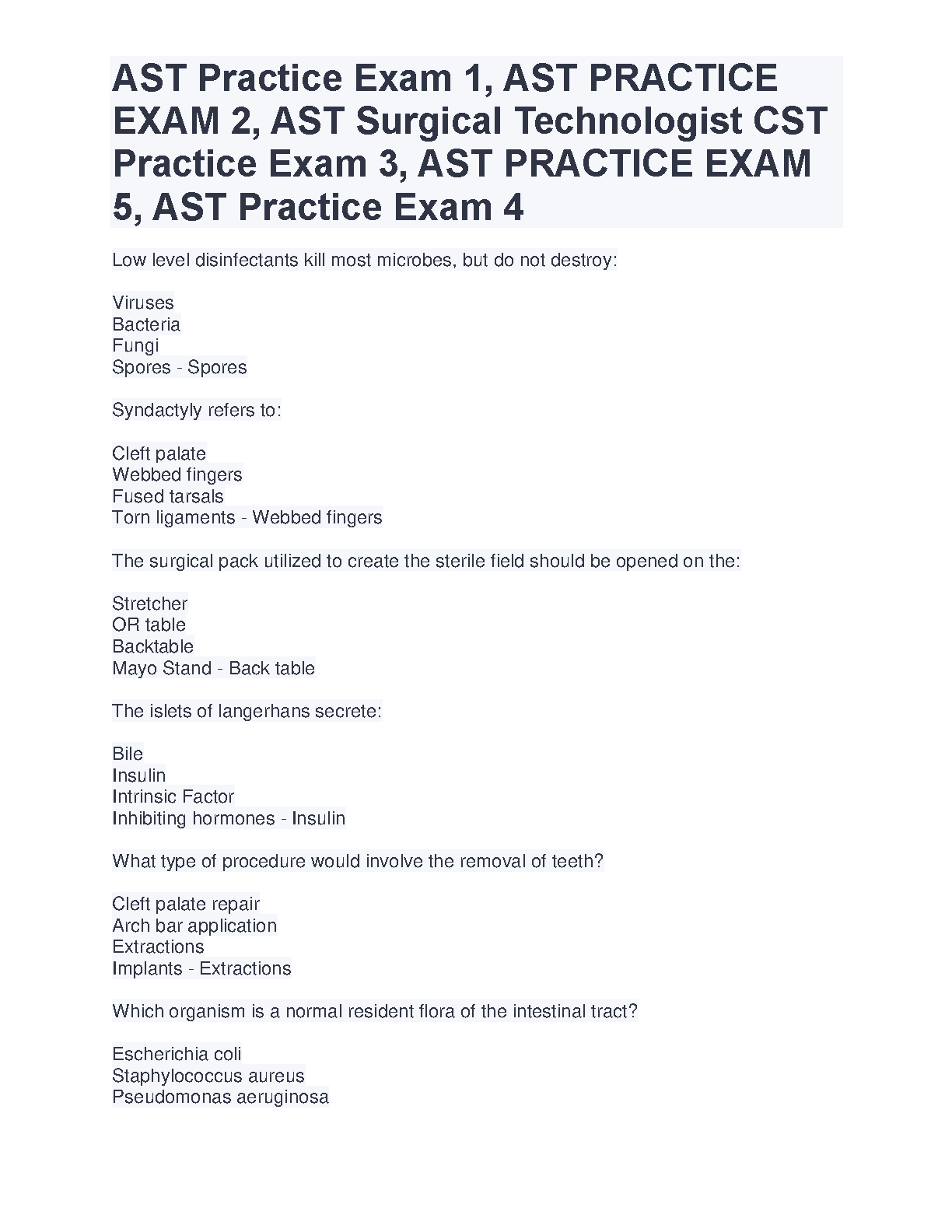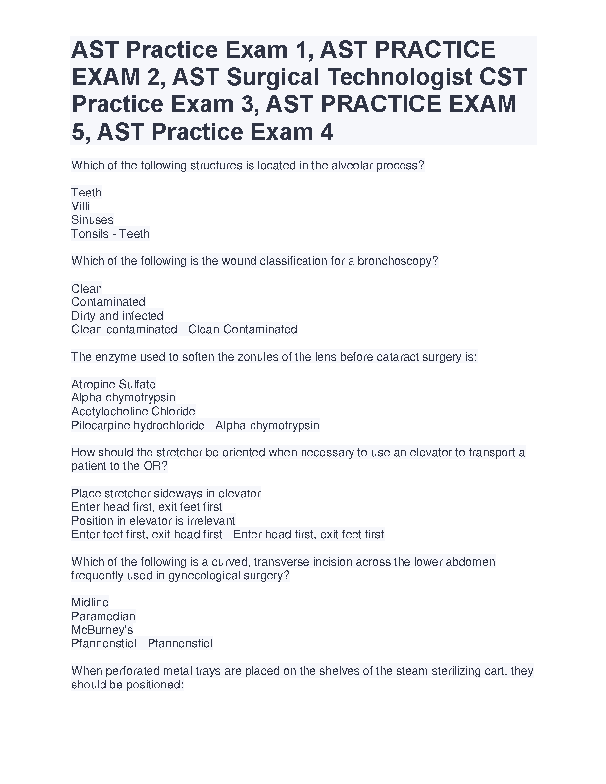 AST Practice Exam 1, AST PRACTICE EXAM 2, AST Surgical Technologist CST Practice Exam 3, AST PRACTICE EXAM 5, AST Practice Exam 4 - 2024/2025 Edition: Ace Your Surgical Tech Exams on the First Attempt!