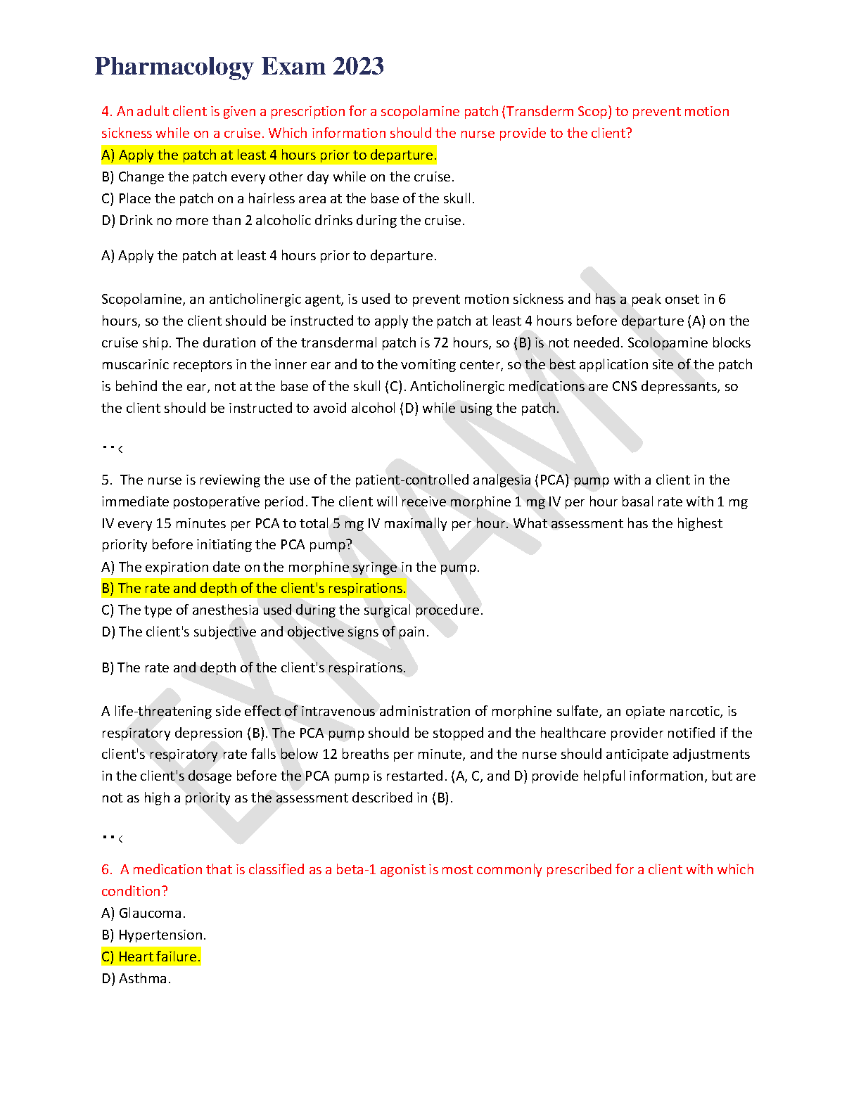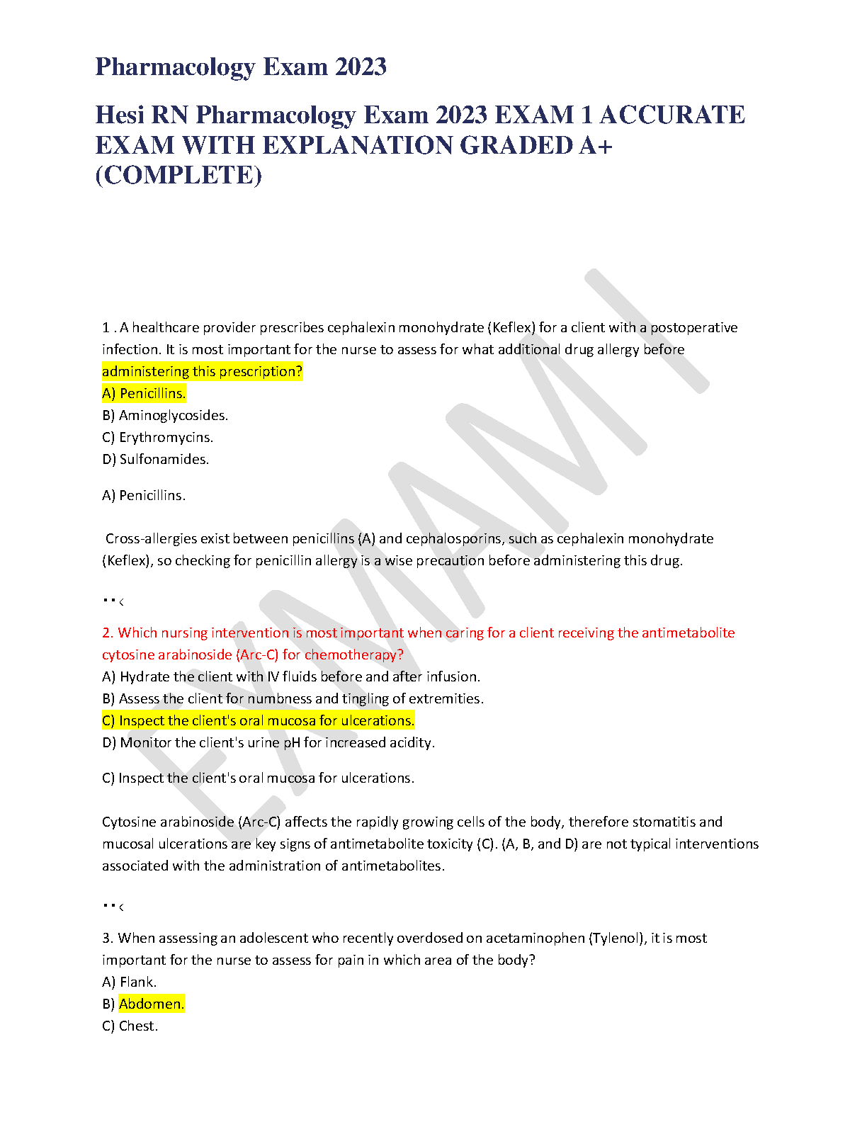 HESI RN Pharmacology Exam 2023 EXAM 1 ACCURATE EXAM WITH EXPLANATION GRADED A+ (COMPLETE) will help you pass the exam on your first attempt thus avoiding resits. This comprehensive resource contains a thorough explanation of all the concepts you need to know for your exam. Our study guide is designed to help you understand the material and prepare for your exam with confidence.