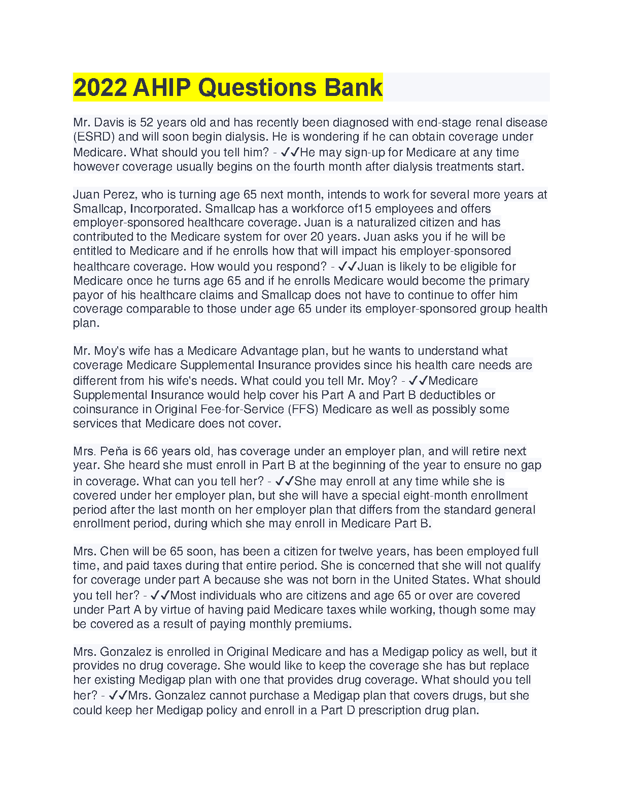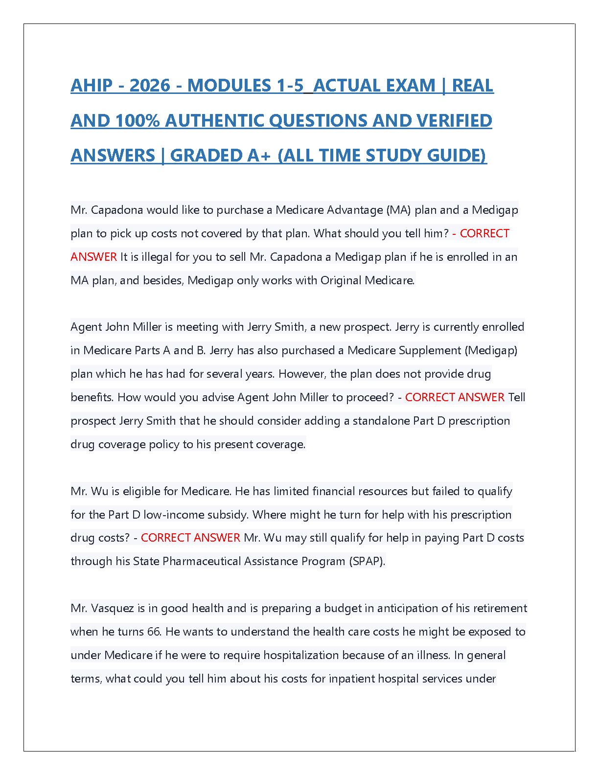 Get ready to ace your AHIP exams! This resource covers everything you need to know about Medicare Advantage and Part D, including key concepts, important regulations, and real-world scenarios. With our 100% verified solutions, you can be confident in your understanding and prepare for success.