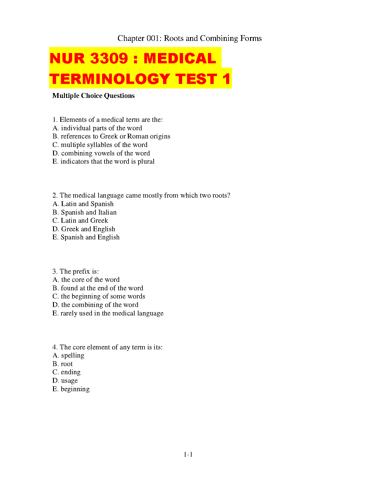 NUR 3309: Medical Terminology Test 1 - Practice Questions for Success