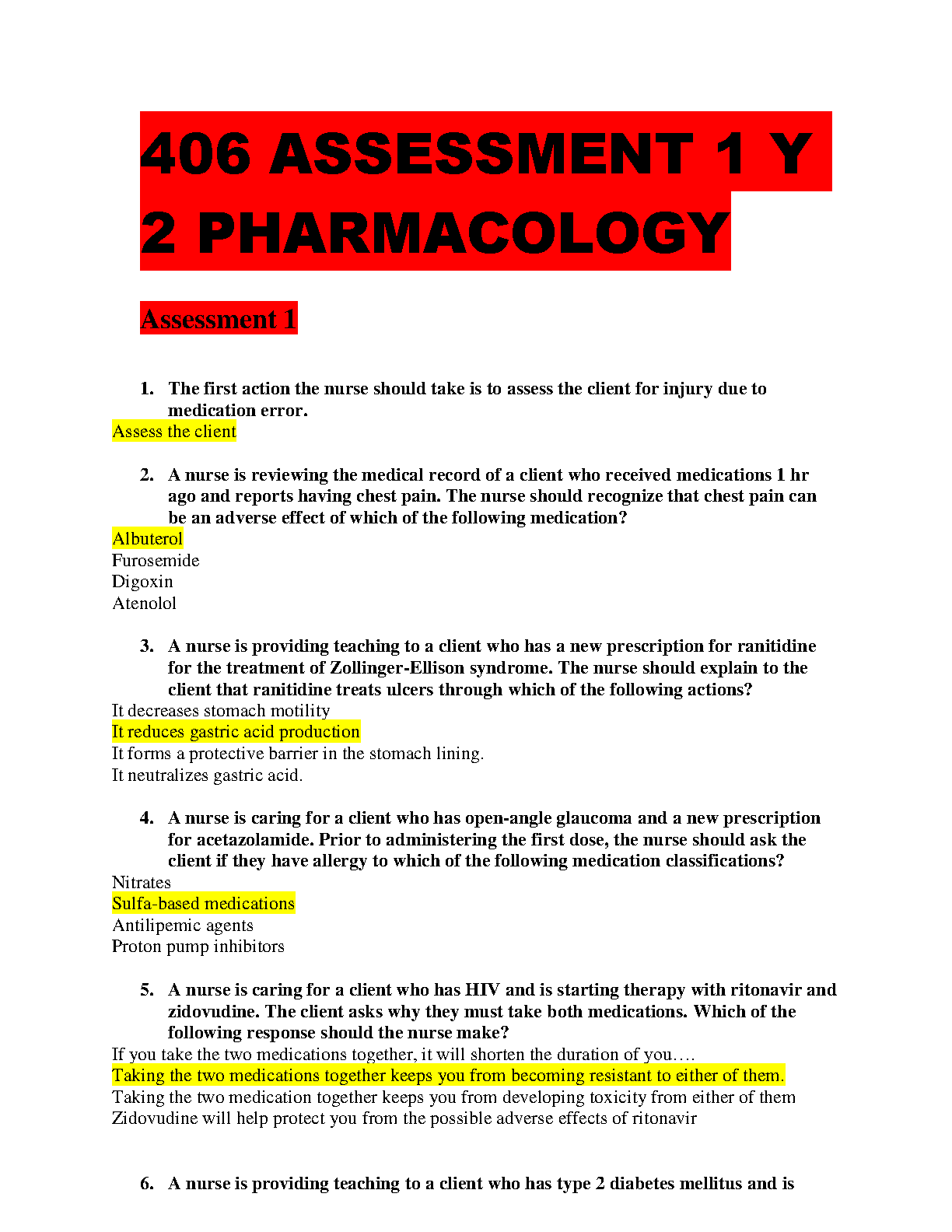 406 Assessment 1 Year 2 Pharmacology - Test Bank with Answers - Latest Edition 2024/2025