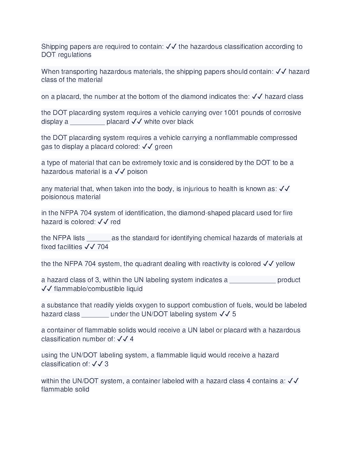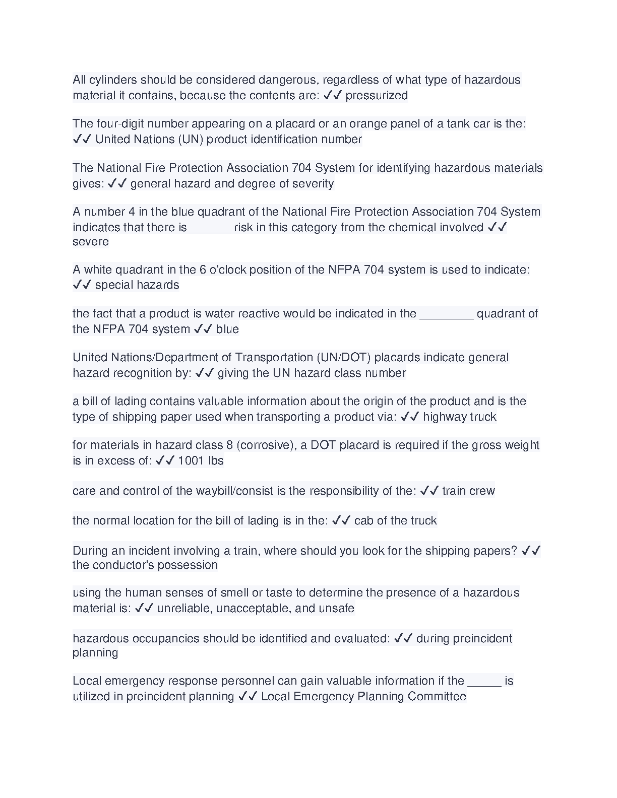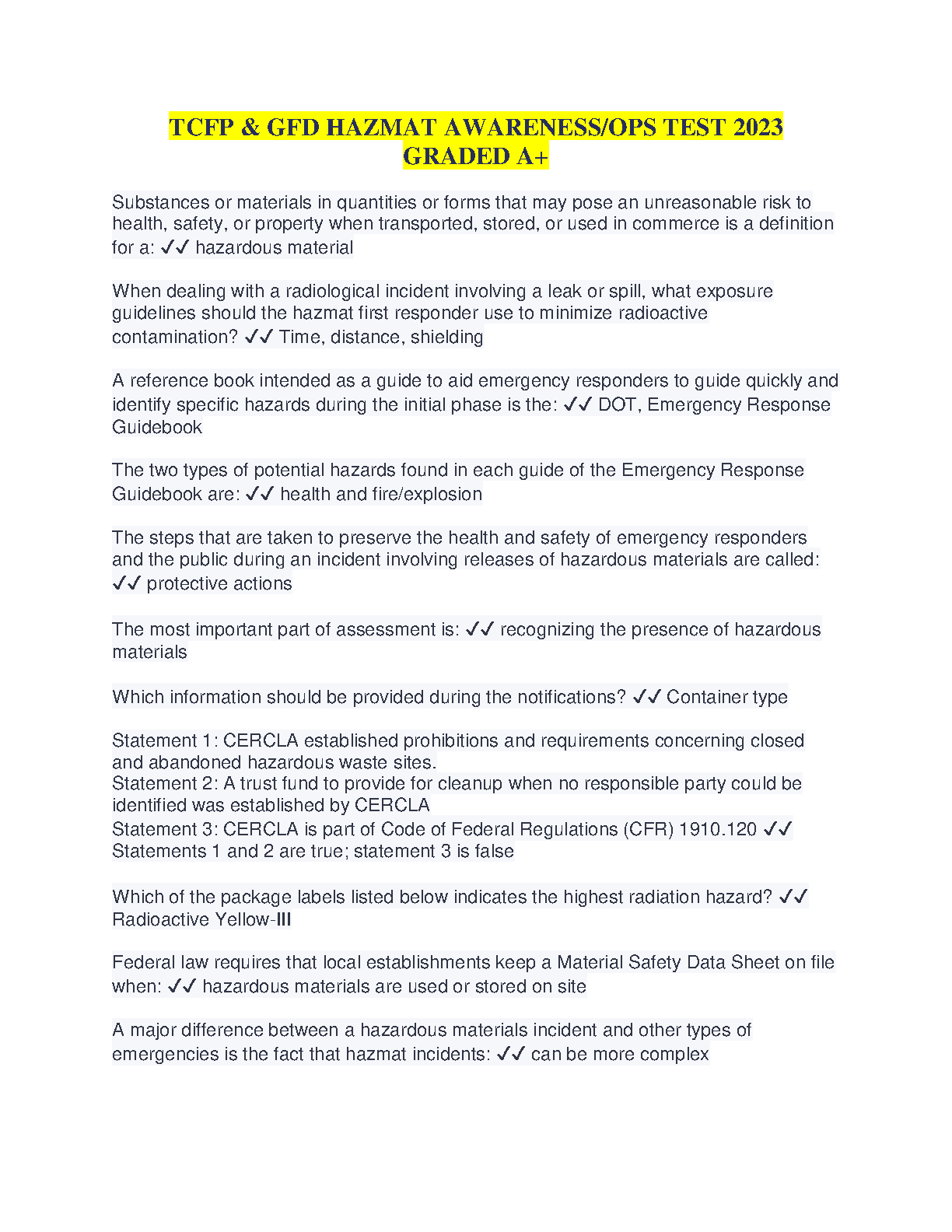 TCFP & GFD HAZMAT Awareness/Ops Test 2023 Graded A+ - Complete Study Guide with Practice Questions and Answers