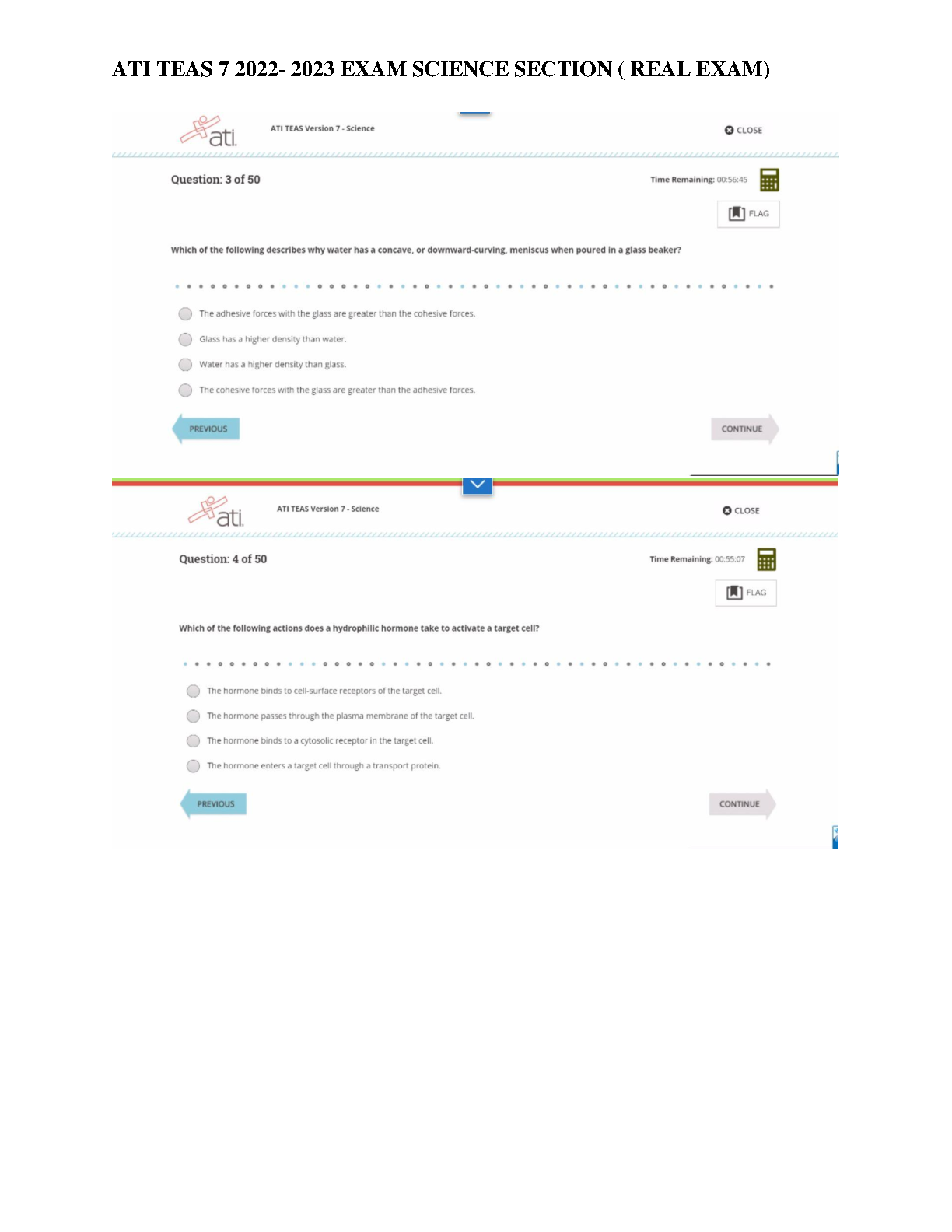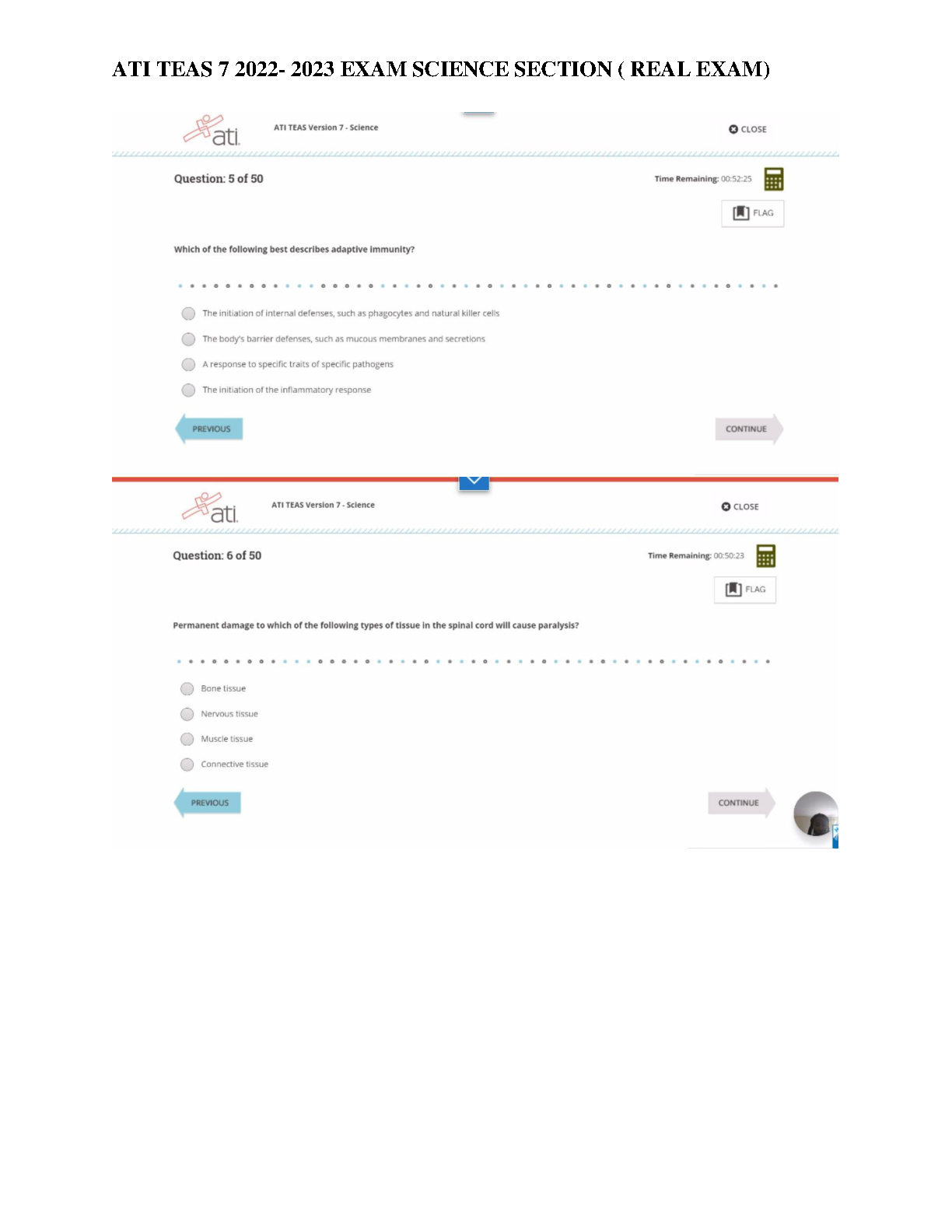 ATI TEAS 7 2022-2023 Exam Science Section (Real Exam) Questions and Answers