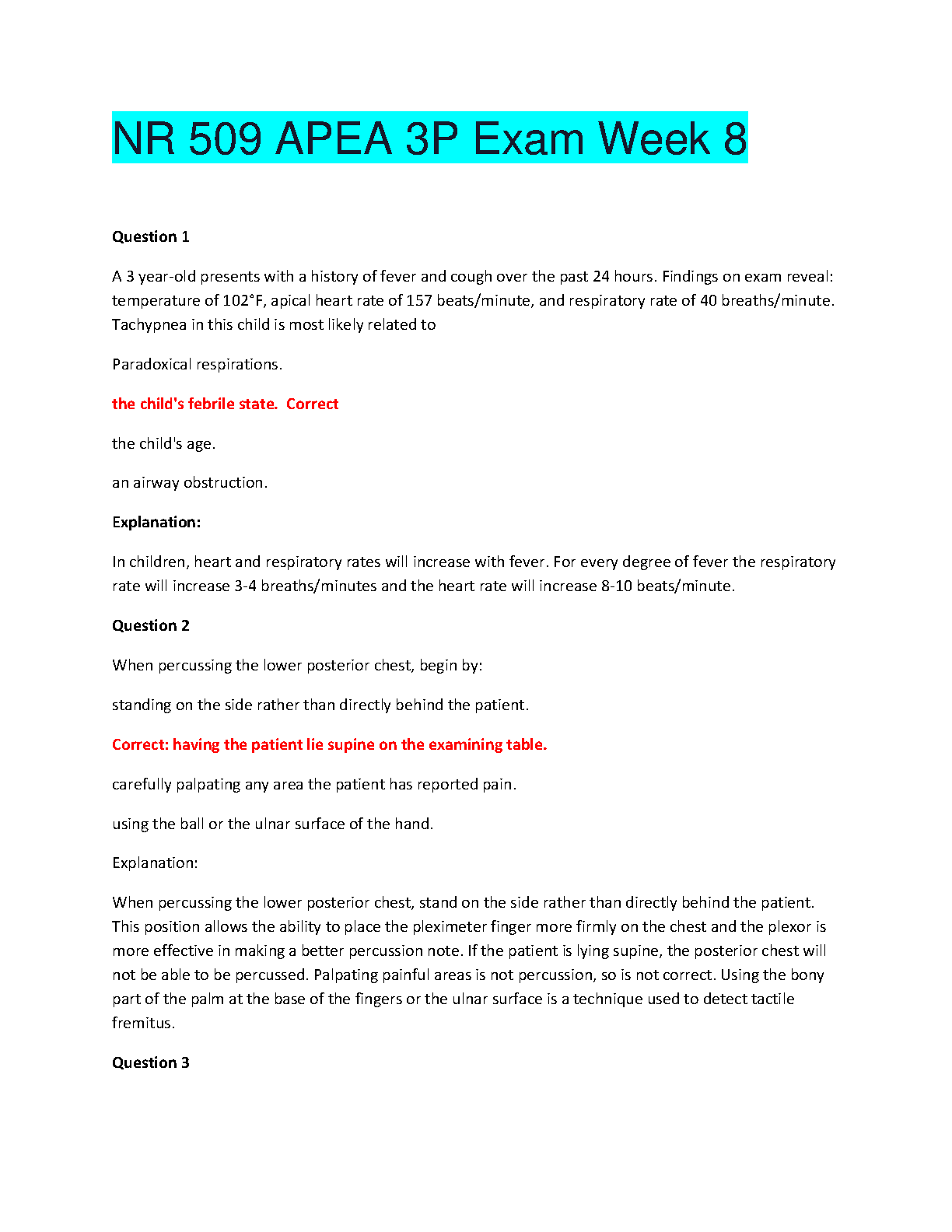 NR 509 APEA 3P Exam Week 8 - Latest Edition 2024/2025 - Ace Your Exam With This Essential Resource