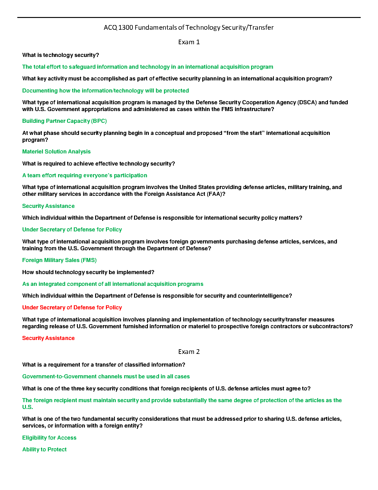 Enhance your understanding of Technology Security and Transfer with this comprehensive study resource designed for ACQ 1300 students. This resource covers key concepts from Exam 1 and 2, helping you master material solution analysis, international acquisition programs, security assistance, and more. Get ready to ace your exams and avoid resits with this invaluable guide.