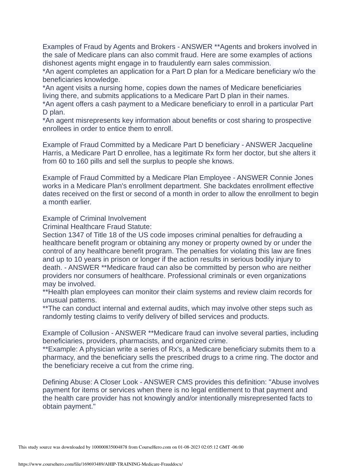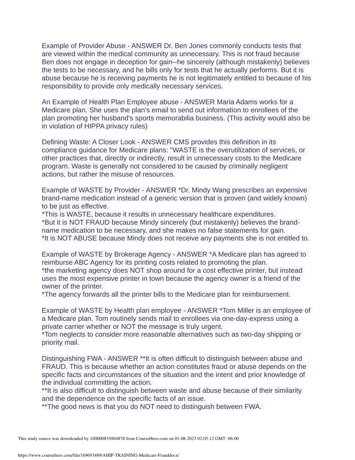 AHIP TRAINING Medicare Fraud, Waste, and Abuse Training 2022/2023 100% Answered CORRECTLY. DOWNLOAD on www.hackedexams.com INSTANTLY.