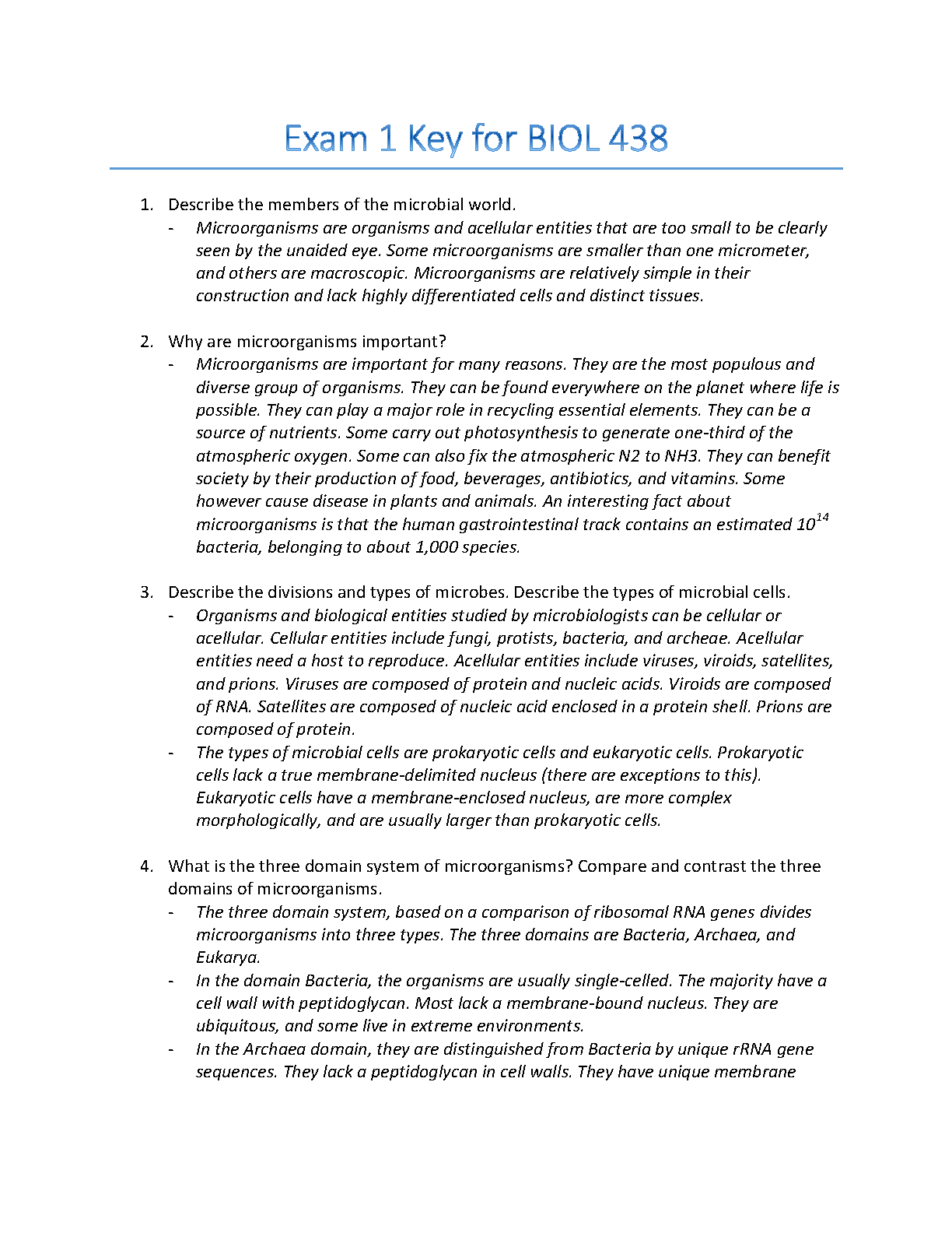 Exam 1 Key for Biol 438: Microbiology by Dr. John Doe, Dr. Jane Doe, Dr. Mark Doe 2024/2025 Edition