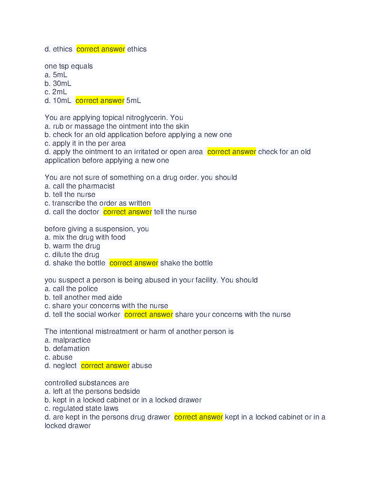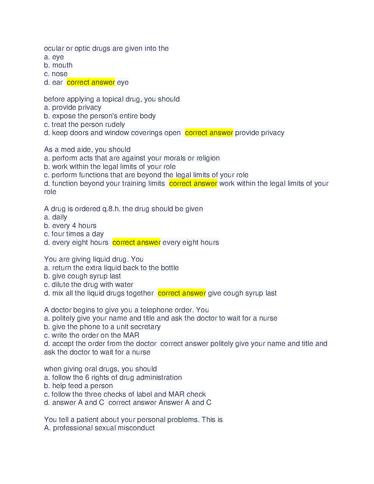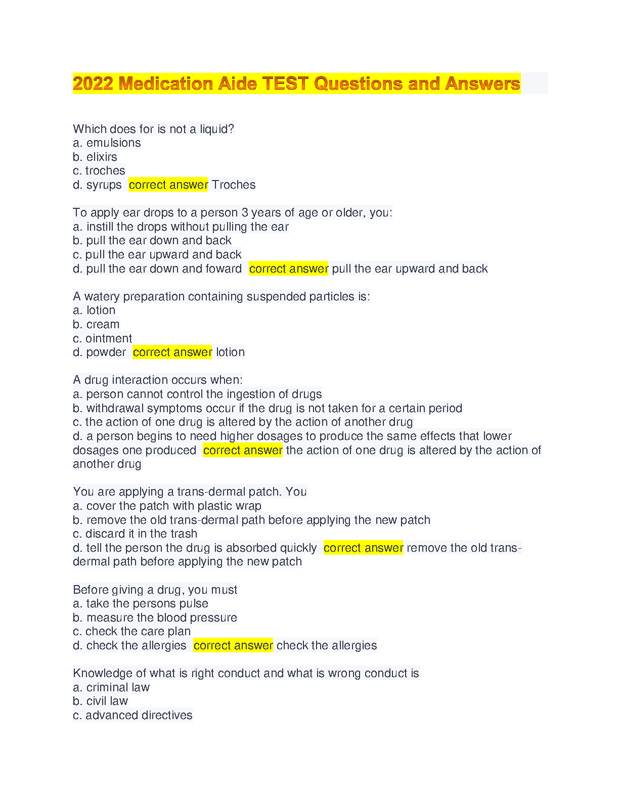 2022 Medication Aide TEST Questions and Answers - Practice for Exam Success