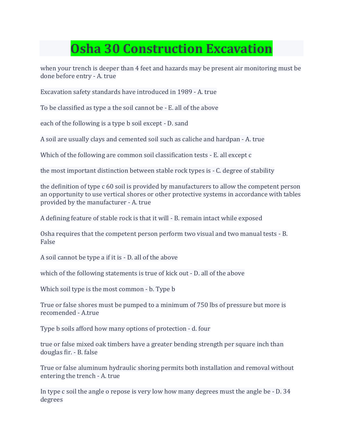 VATI Osha 30 Construction Excavation REQUIREMENTS AND STANDARDS 2023/2024. DOWNLOAD on www.hackedexams.com INSTANTLY.