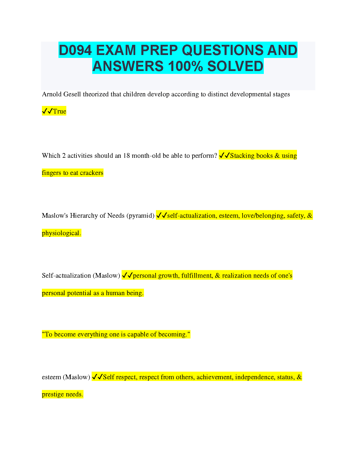 D094 Exam Prep Questions and Answers 100% Solved: 2024/2025 Edition