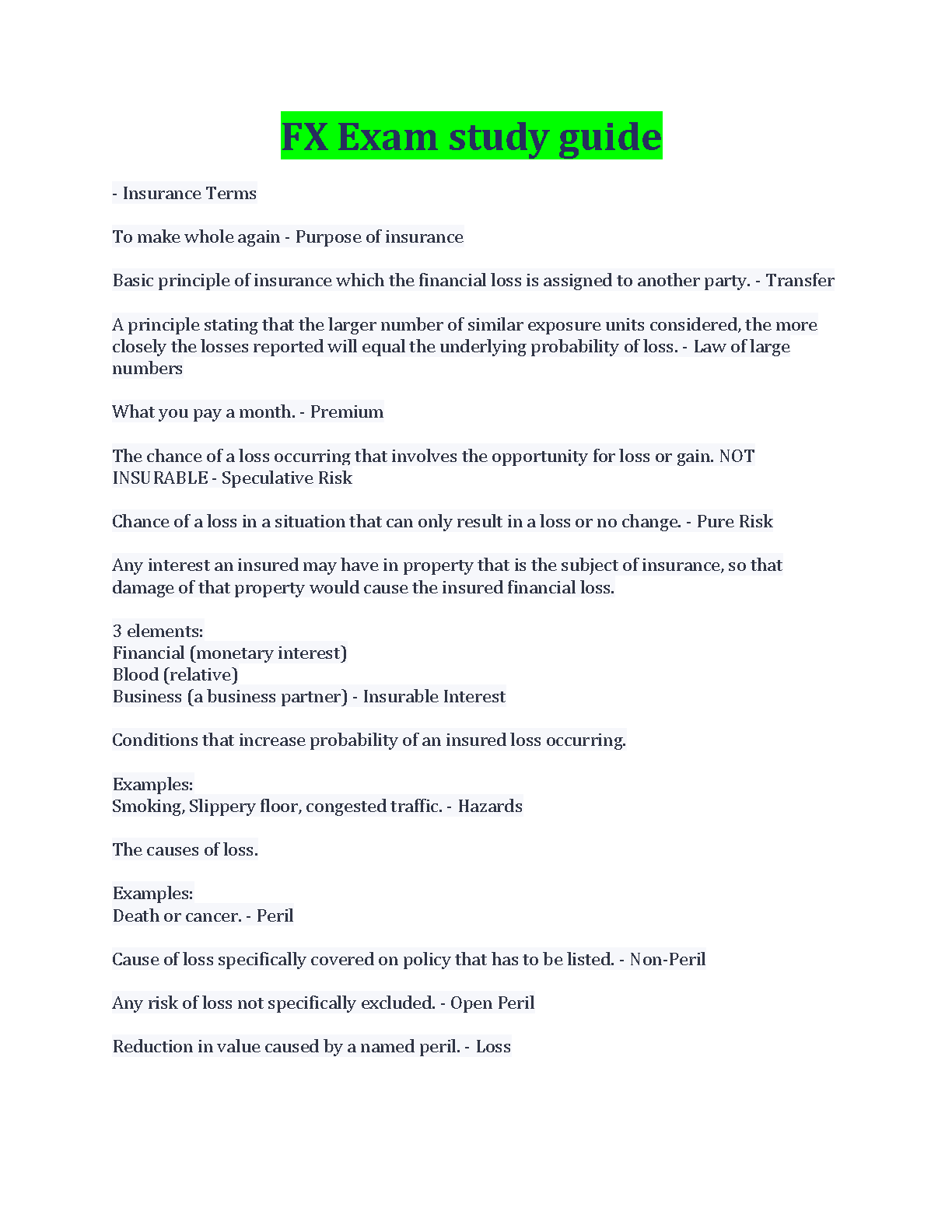 This comprehensive study guide covers essential insurance terms, concepts, and principles, designed to help students ace their FX exam on the first attempt.