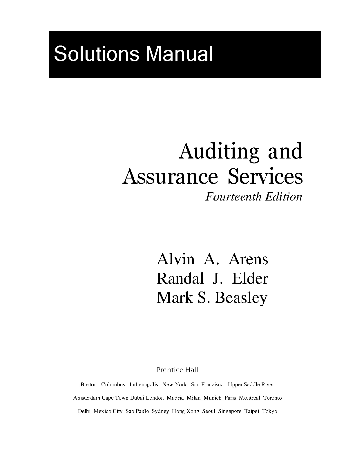 Ace your Auditing and Assurance Services class with this comprehensive solutions manual for the 14th edition textbook by Alvin A. Arens, Randal J. Elder, and Mark S. Beasley. Get access to detailed answers and explanations for all end-of-chapter exercises and problems. Perfect for students looking to master the concepts and ace their exams on the first attempt.