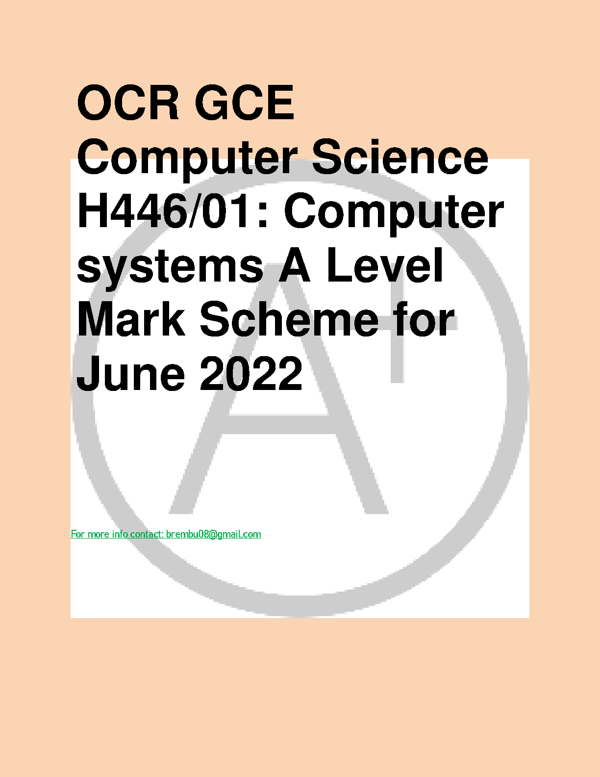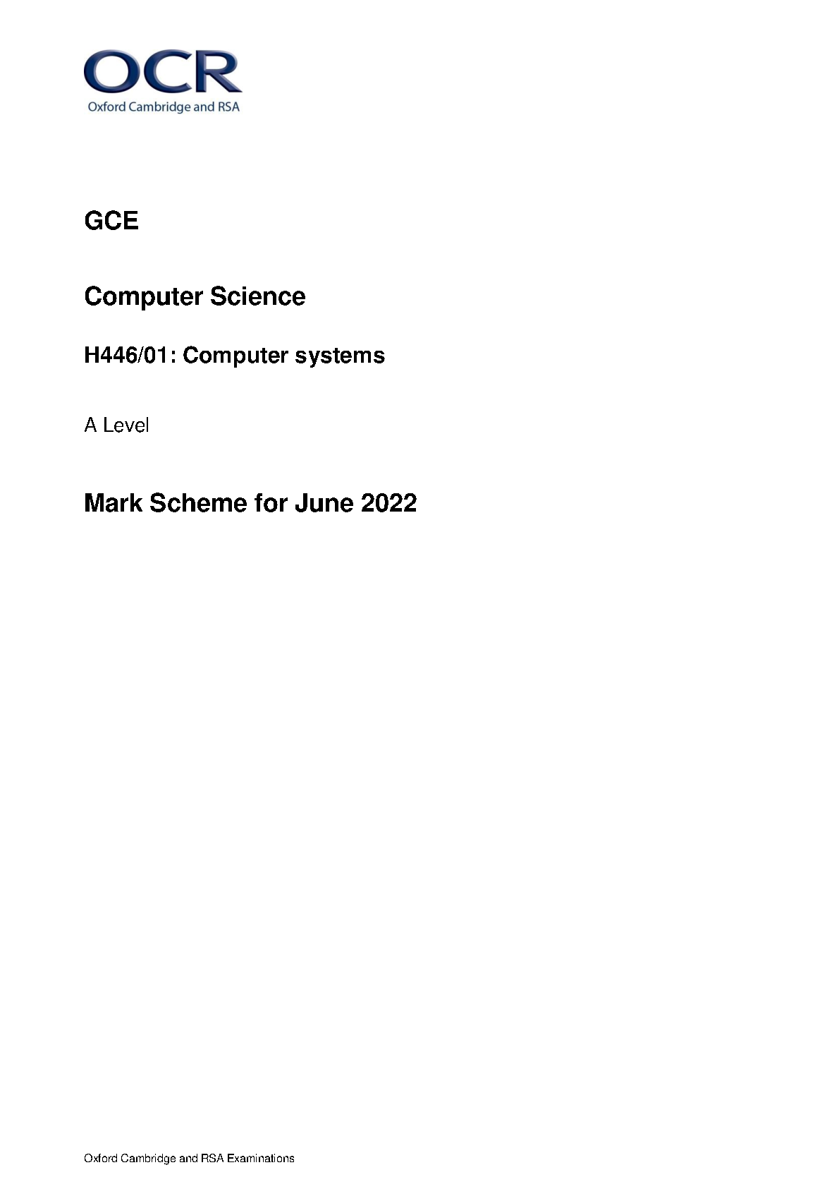 OCR GCE Computer Science H446/01: Computer Systems A Level Mark Scheme June 2022 by Brenda