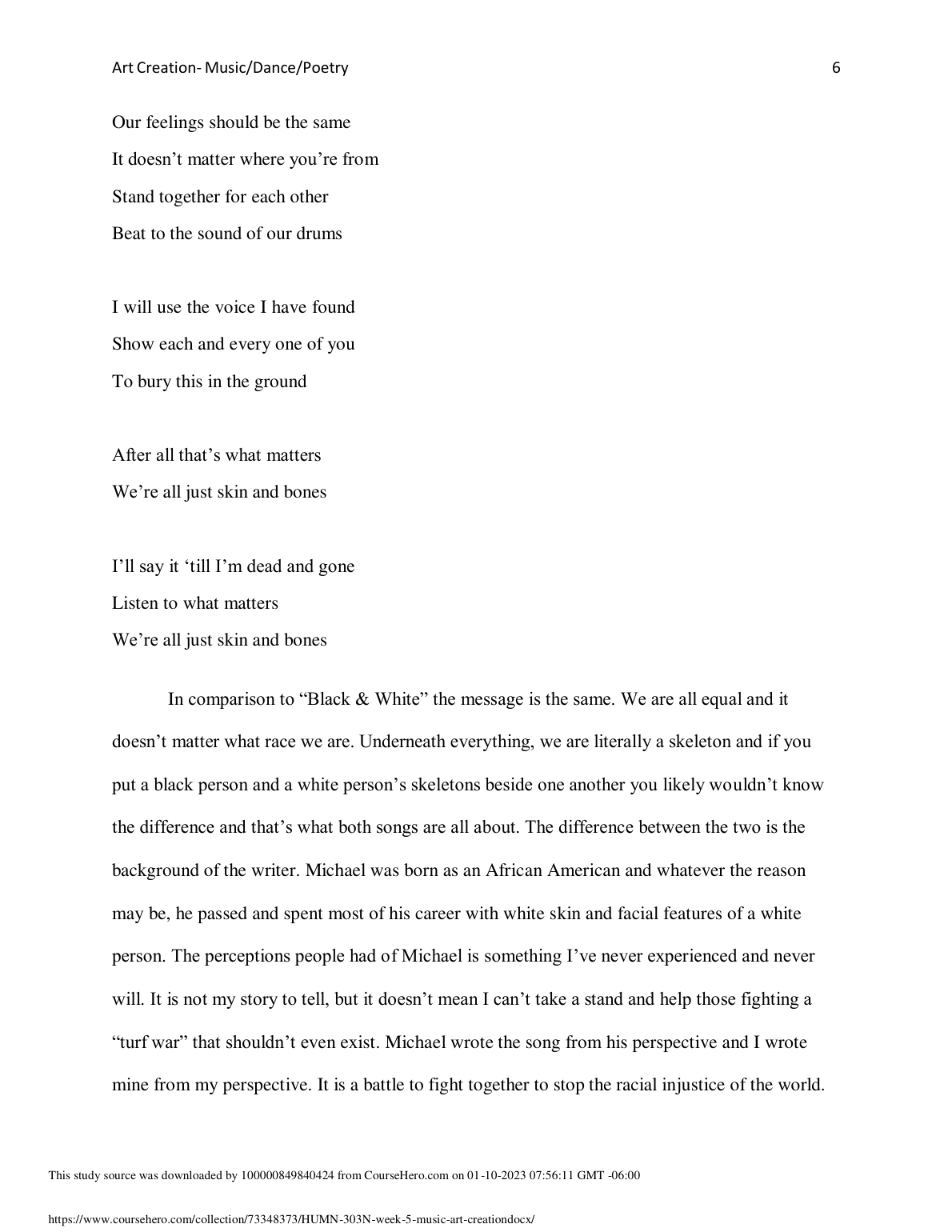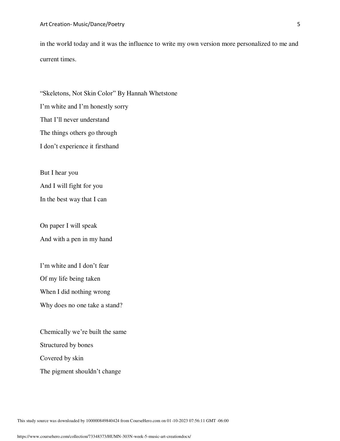 Chamberlain School of Nursing HUMN 303N Art Creation: Music/Dance/Poetry This study source explores the intersection of art, music, dance, and poetry, providing students with a comprehensive understanding of the various forms of artistic expression and their impact on society.