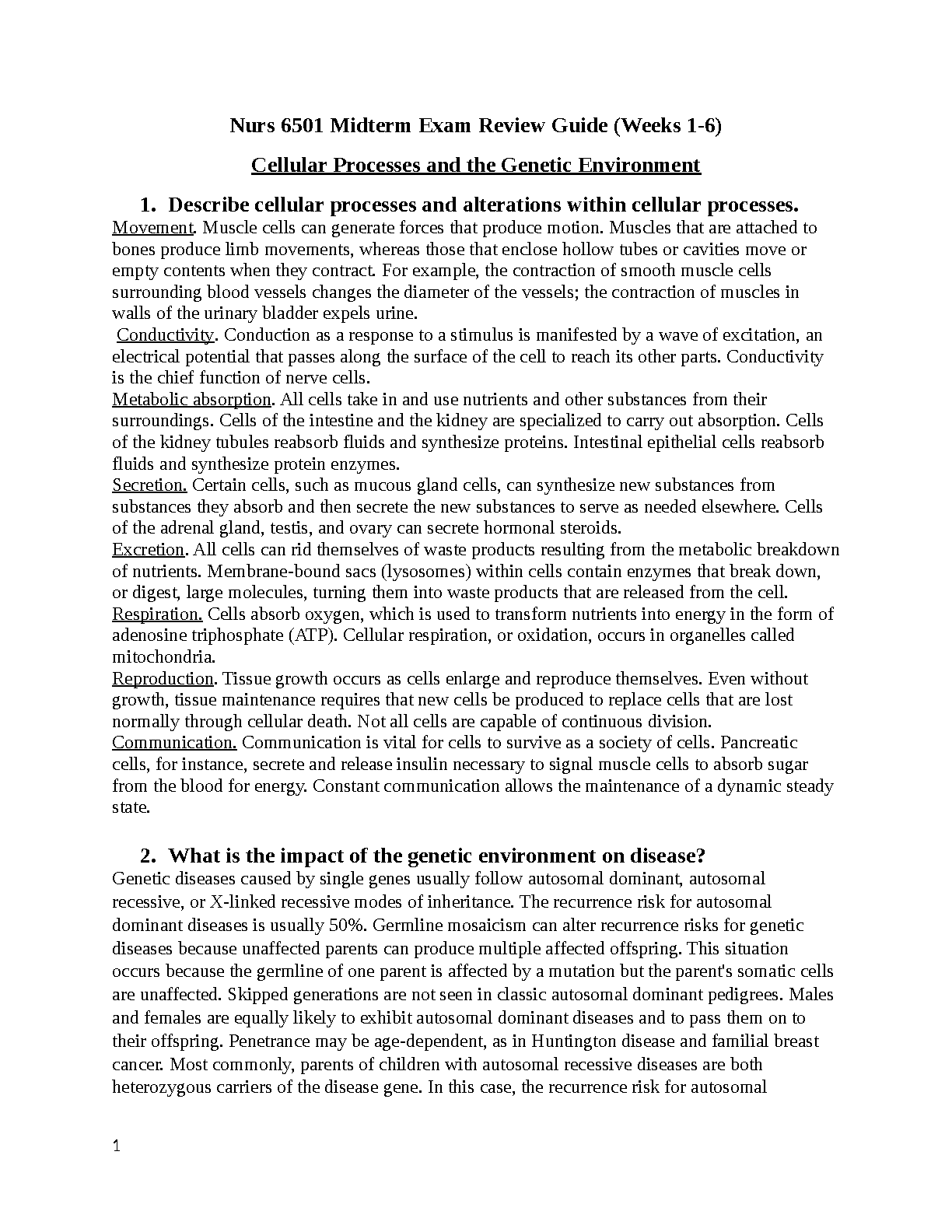 Nurs 6501 Midterm Exam Review Guide (Weeks 1-6) - Cellular Processes and the Genetic Environment: 2024/2025 Edition by [Author Name]