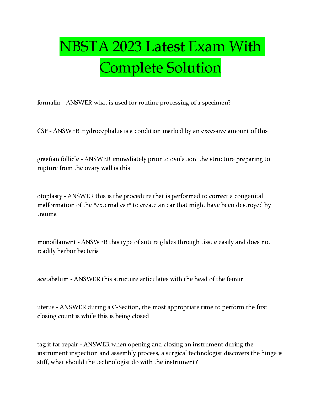 This NBSTA 2023 Latest Exam With Complete Solution resource is perfect for students looking to achieve exam success on their first attempt. With this comprehensive guide, you will find the solutions to all the exam questions, helping you prepare effectively and confidently.