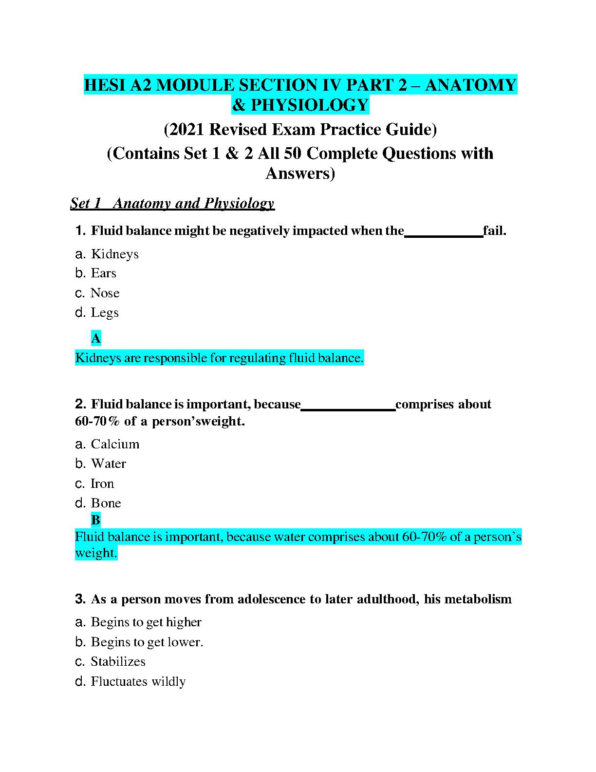 HESI A2 Module Section IV Part 2 - Anatomy & Physiology 2021 Revised Exam Practice Guide (Contains Set 1 & 2 All 50 Complete Questions with Answers) by Linda Anne Williams, MD, PhD
