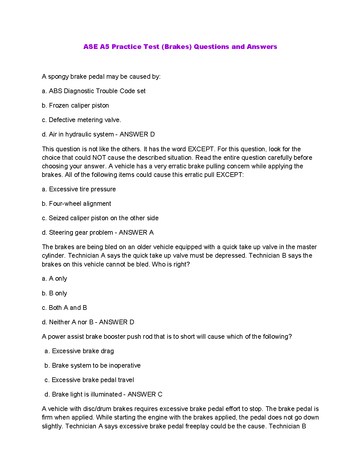 ASE A5 Practice Test (Brakes) Questions and Answers: 2024/2025 Edition - Pass Your Exam on the First Attempt!