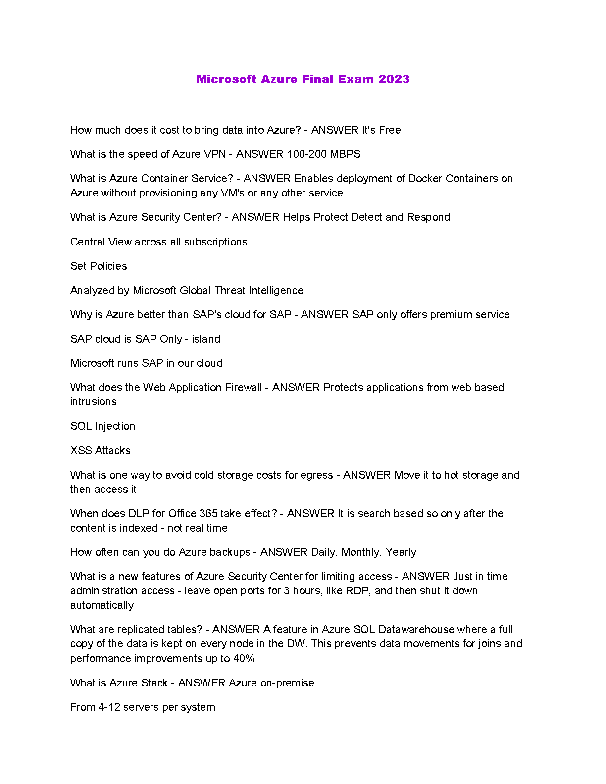 This Microsoft Azure Final Exam 2023 study guide is designed to help you master the key concepts and prepare for your exam with confidence. Our comprehensive coverage includes real-world examples, practice questions, and detailed explanations. Achieve your certification goals and avoid resits with our effective study materials.