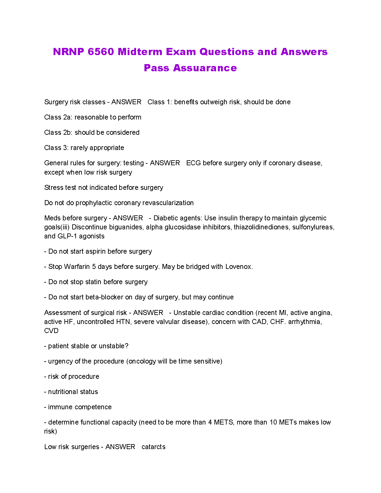 Ace your NRNP 6560 Midterm exam with this comprehensive study guide filled with practice questions and detailed answers. This resource is designed to help you master the essential concepts and achieve a first-attempt pass.