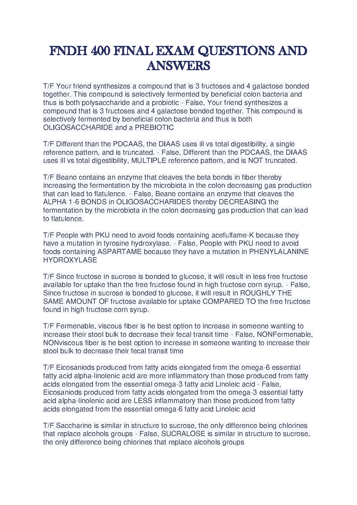 Conquer your FNDH 400 final exam with this comprehensive study guide, designed to help you achieve the best possible grade and avoid resits. This resource includes a collection of in-depth practice questions and detailed answers, covering all key concepts and topics. Get ready to excel in your exam!