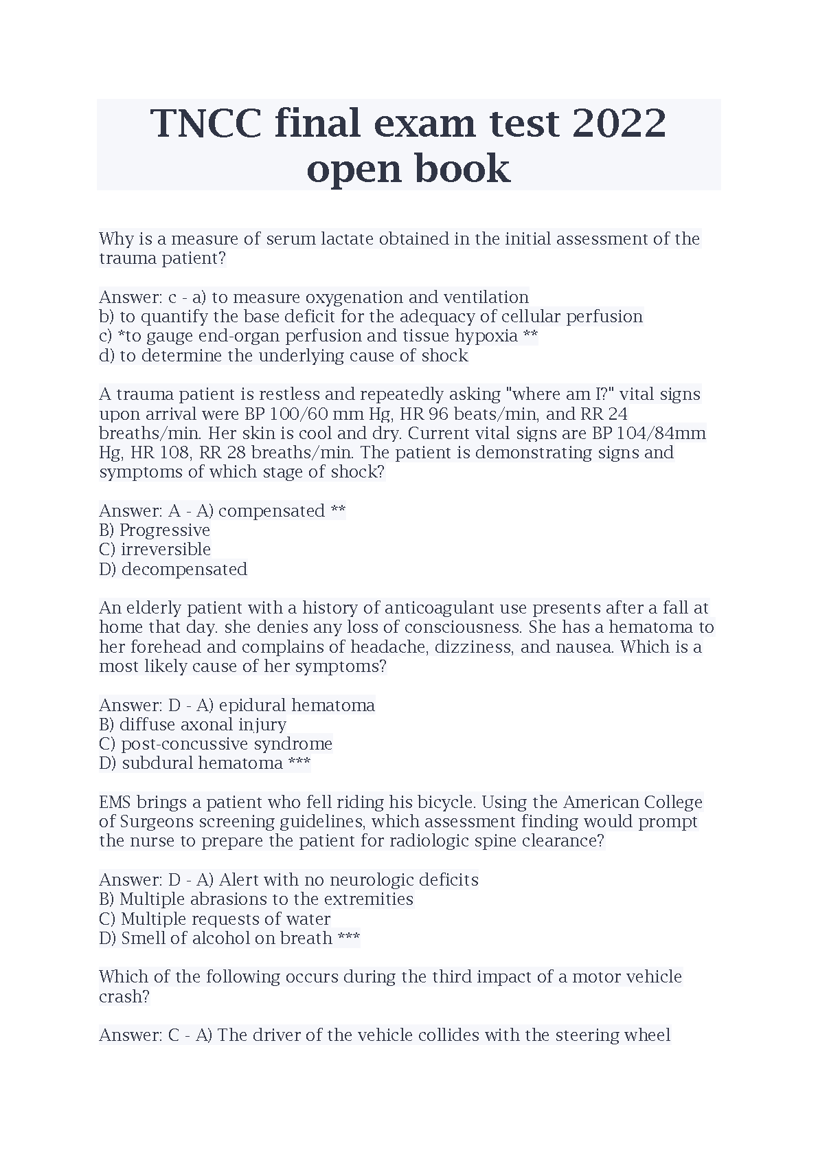 TNCC Final Exam Test 2022 Open Book: A Comprehensive Guide for First-Time Success