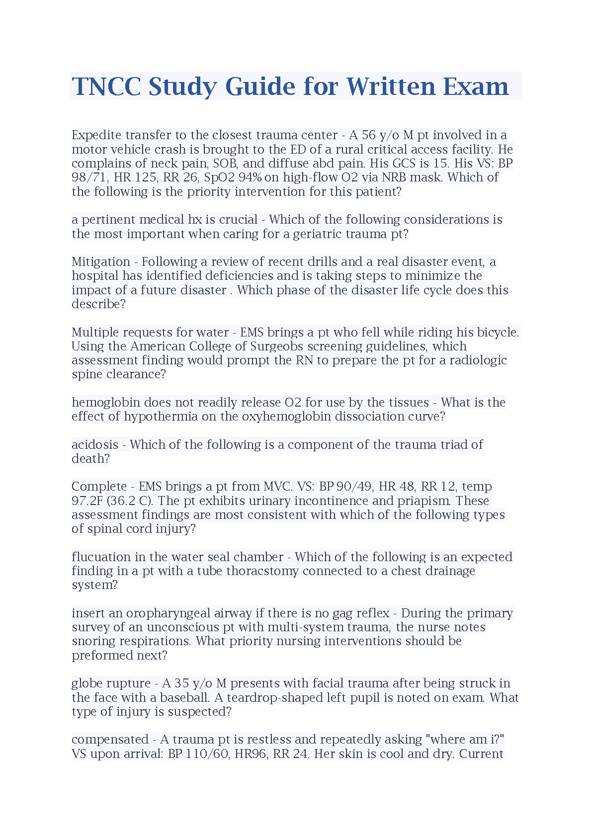 TNCC Study Guide for Written Exam 2024/2025: Ace Your First Attempt and Avoid Resits