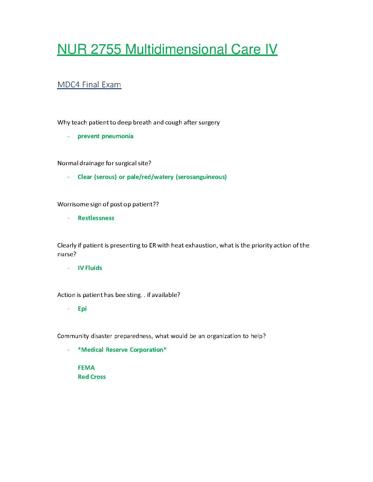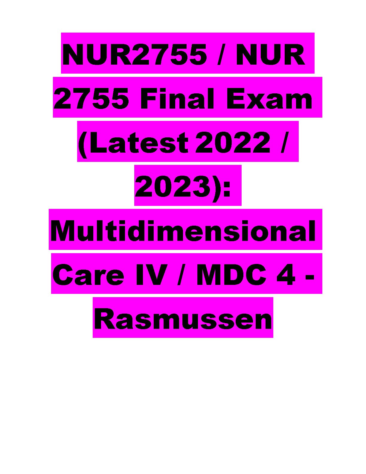 NUR2755 Final Exam (Latest 2022/2023) : Multidimensional Care IV / MDC 4 - Rasmussen