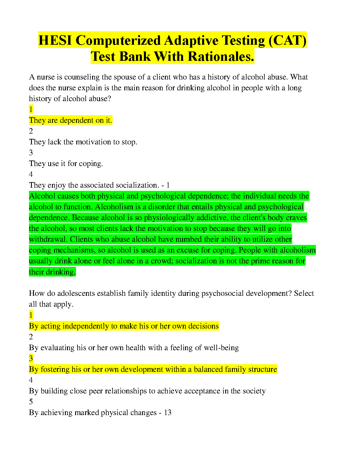 HESI Computerized Adaptive Testing (CAT) Test Bank With Rationales - Latest Edition for 2024/2025 - Ace Your Exams on the First Attempt