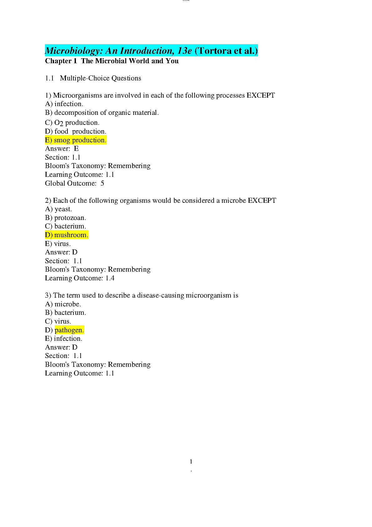 Microbiology: An Introduction 13th Edition Test Bank by Gerard J. Tortora, Berdell R. Funke, Christine L. Case