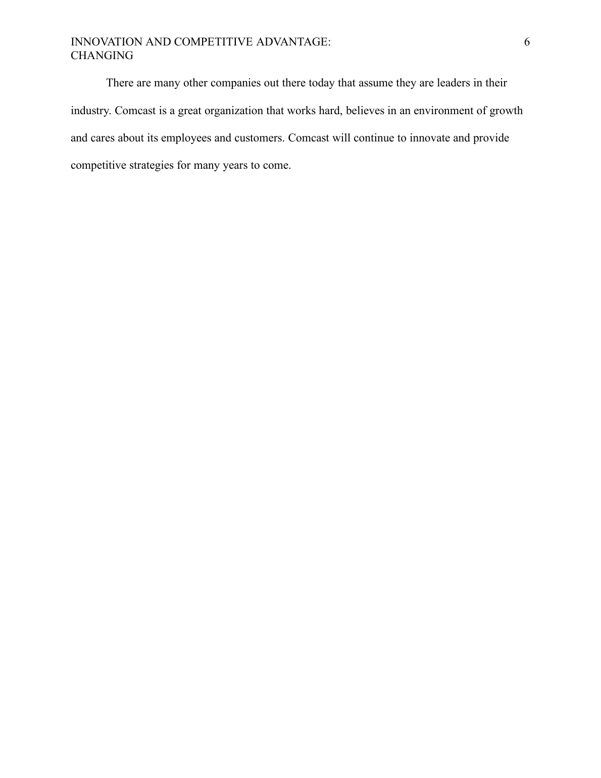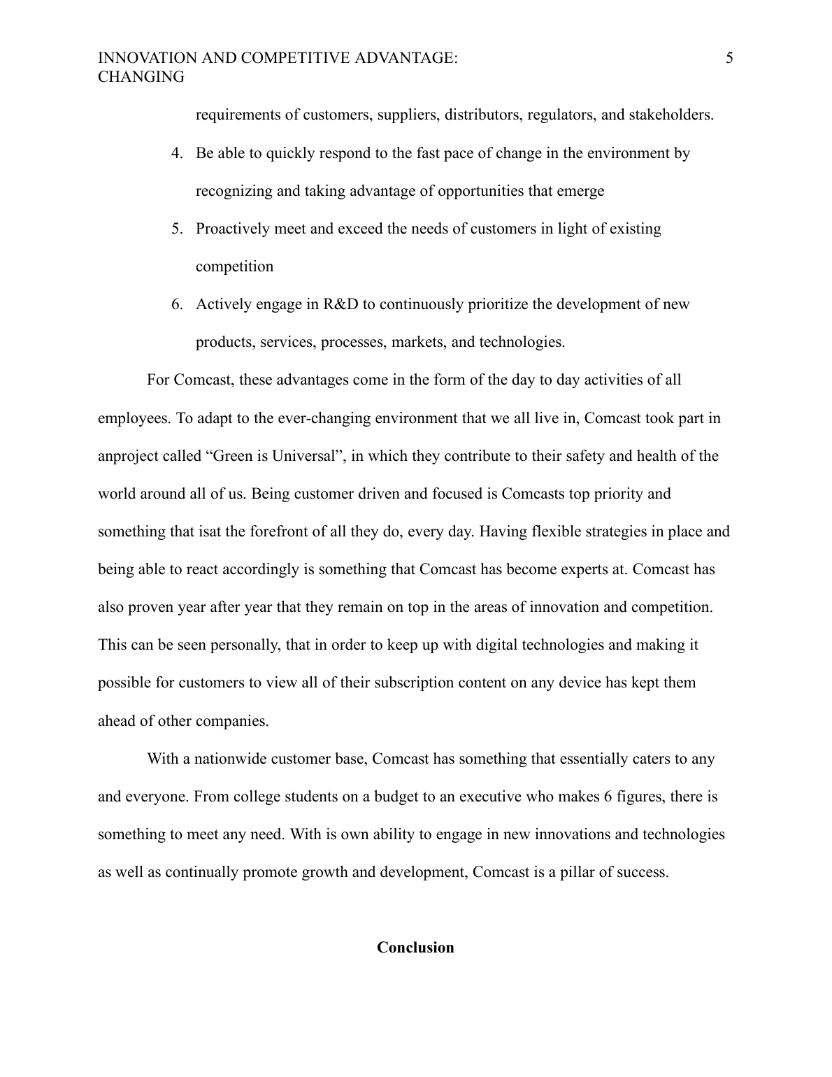 Innovation and Competitive Advantage: Changing Environments MGT/411