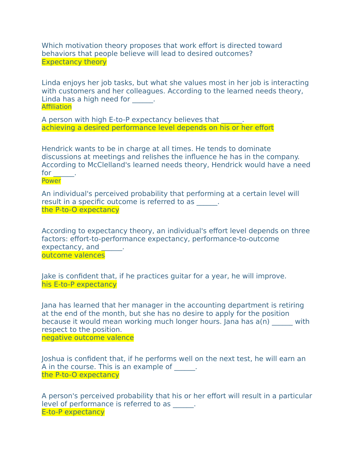 CHAPTER 5 FOUNDATIONS OF EMPLOYEE MOTIVATION Q & A COMPLETE SERIES