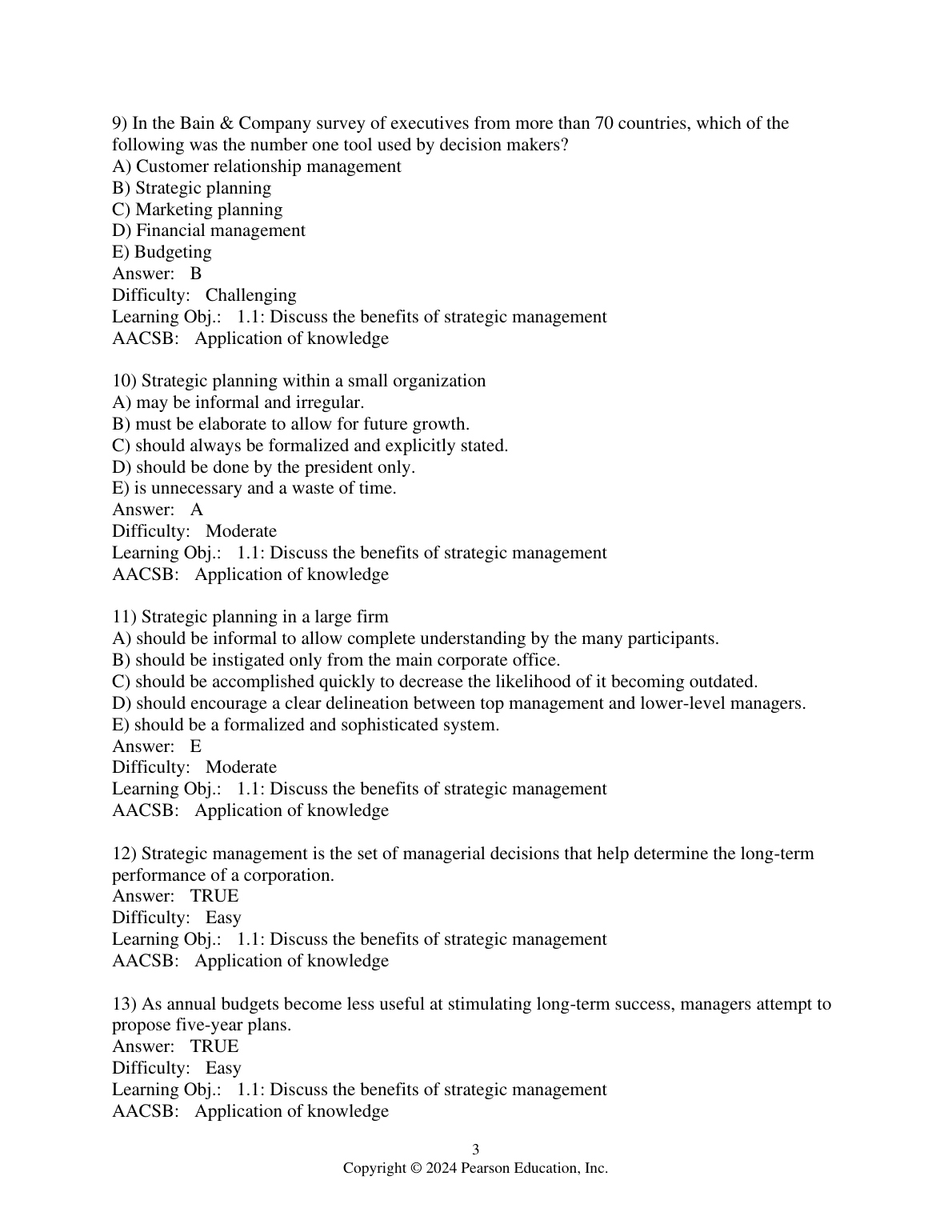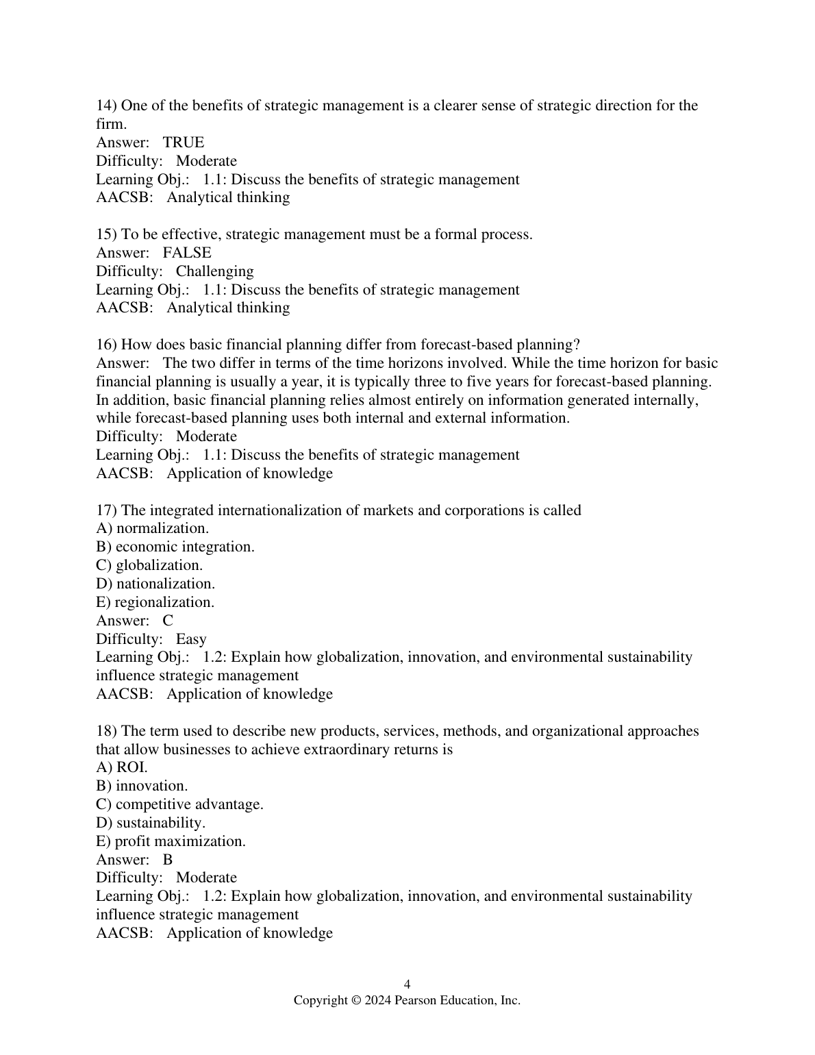 Test Bank Strategic Management and Business Policy: Globalization, Innovation and Sustainability Sixteenth Edition Charles E. Bamford Thomas L. Wheelen Alan N. Hoffman J. David Hunger ALL CHAPTERS INCLUDED GRADED A+