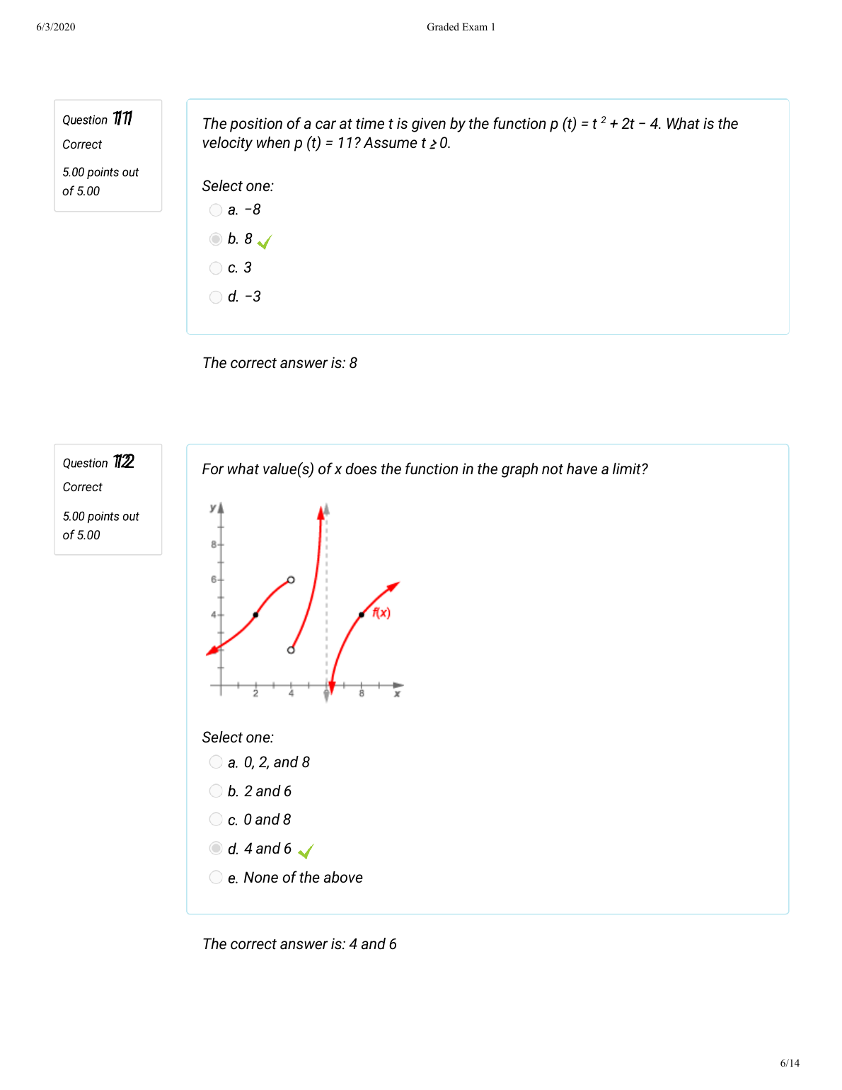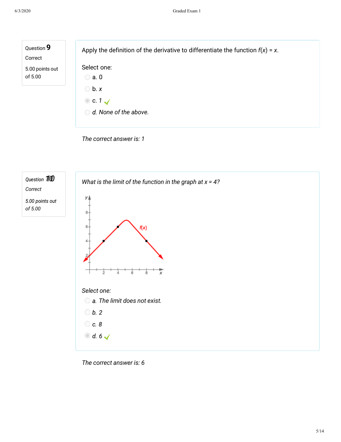 MAT 250 Graded Exam 1 Calculus An introduction to derivatives scored 100%