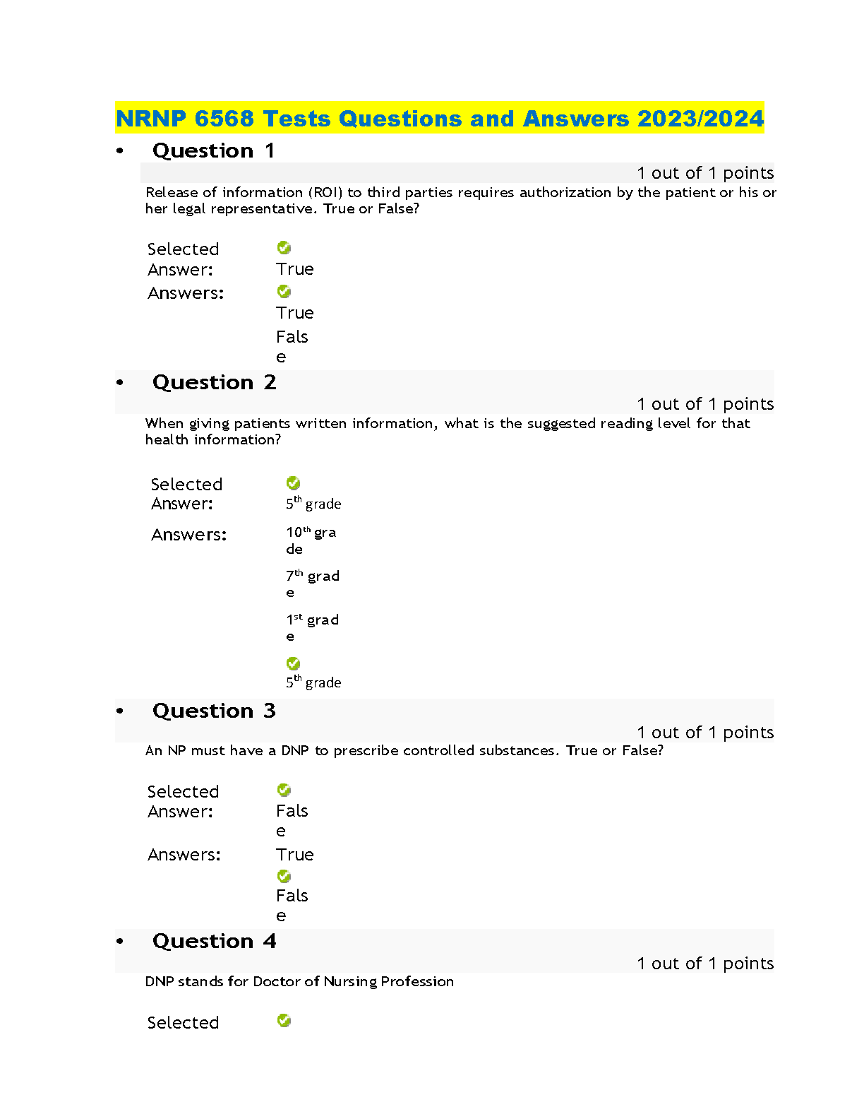 NRNP 6568 Tests Questions and Answers 2023/2024 - Practice Questions for Success