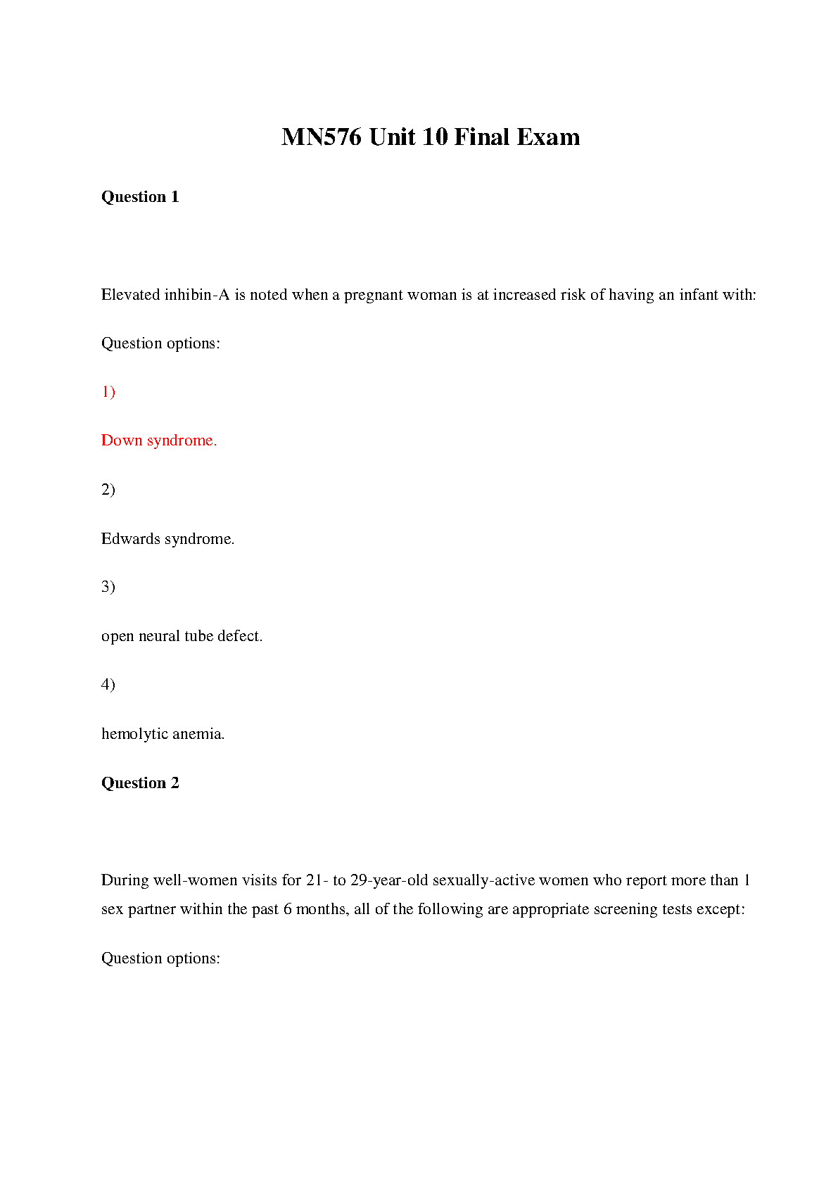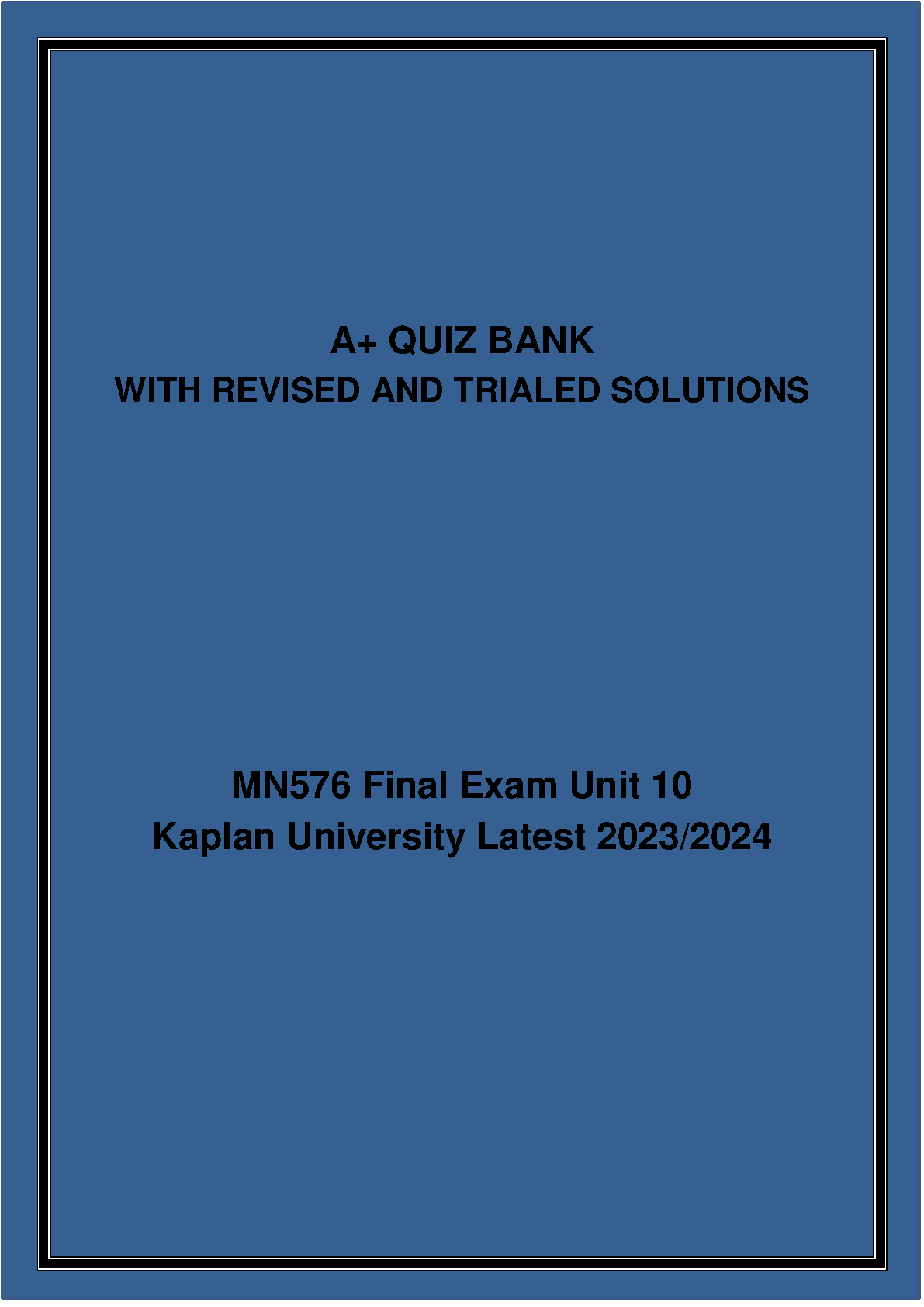 MN576 Final Exam Unit 10 Kaplan University A+ Quiz Bank with Revised and Trialed Solutions Latest 2023/2024 Edition